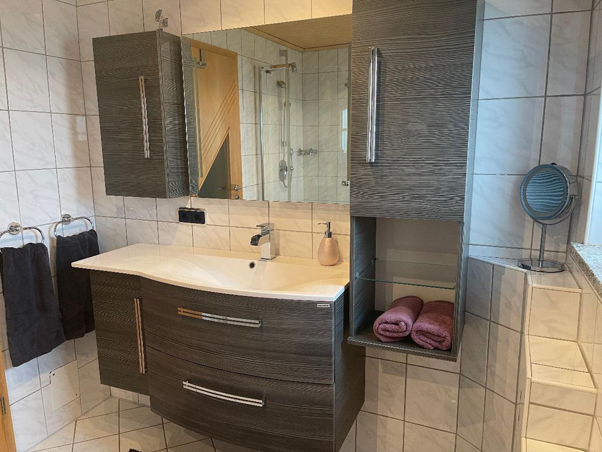 - 1 Badezimmer mit Waschbecken, Dusche und WC