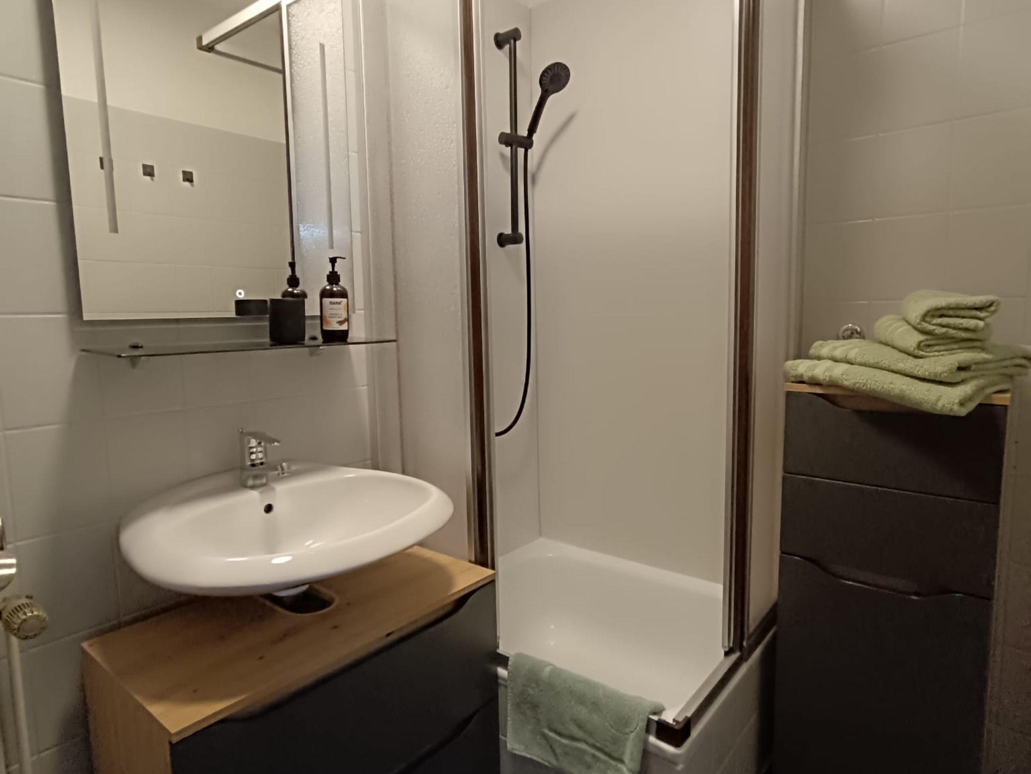 Unsere gemütlich eingerichtete Ferienwohnung mit 42 m² Wohnfläche befindet sich im 1.Stock und bietet Platz für 2 Personen. Die komplett ausgestattete Küchennische mit Kühlschrank, Herd, Backofen, Wasserkocher, Toaster, Kaffeemaschine und einer Grundausstattung an Geschirr, Gläser und Besteck lässt keine Wünsche offen. Im Wohnbereich befindet sich ein Esstisch, eine Couch und ein TV mit SAT-Empfang und Zugang zum Balkon mit einem herrlichen Blick auf den Ortskern. Die Ferienwohnung verfügt über ein Schlafzimmer mit einem Doppelbett. Im Badezimmer befindet sich eine Dusche und ein WC. Bettwäsche, Handtücher, kostenfreie WLAN-Nutzung, Parkplatz und Endreinigung sind im Preis enthalten. Bitte beachten Sie, dass Haustiere nur nach Absprache erlaubt sind.