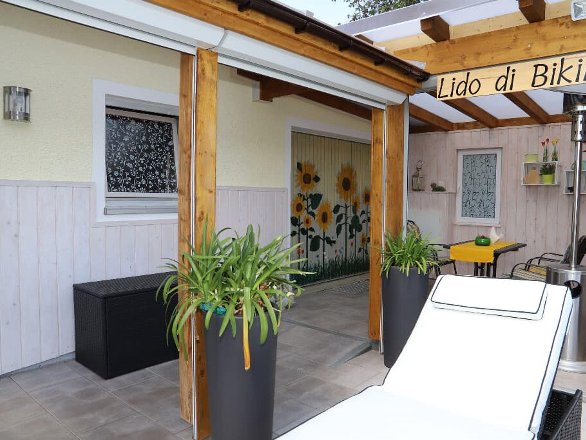 Das Einzimmer-Apartment für 2 Personen im Obergeschoß, kann auch zur Erweiterung der FeWo`s genutzt werden. Nehmen Sie hierzu Kontakt mit uns auf (XXXXXX oder Mail an ). In unserem gepflegten Garten finden Sie Erholung und Entspannung. Pergola und Terrasse mit Grill. Keine Haustiere.