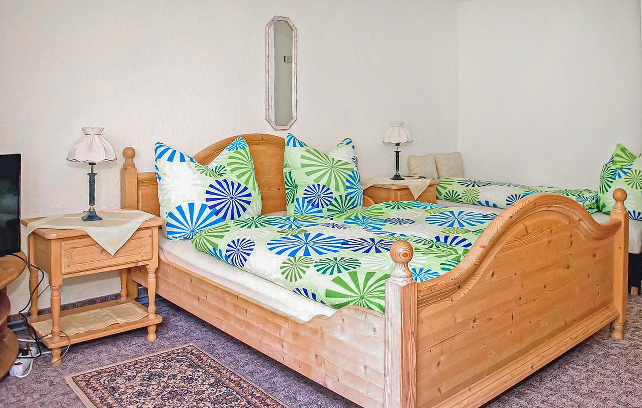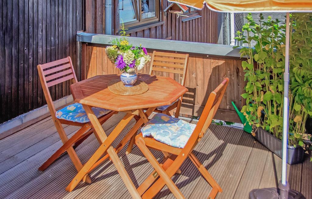 De to komfortabelt indrettede ikke-ryger lejligheder er centralt opvarmede og har separate indgange. Denne lille lejlighed har et møbleret opholdsområde foran døren og ligger i stueetagen i en anneksbygning, den store lejlighed DZV441 med balkon ligger på øverste etage af ejerens hus.