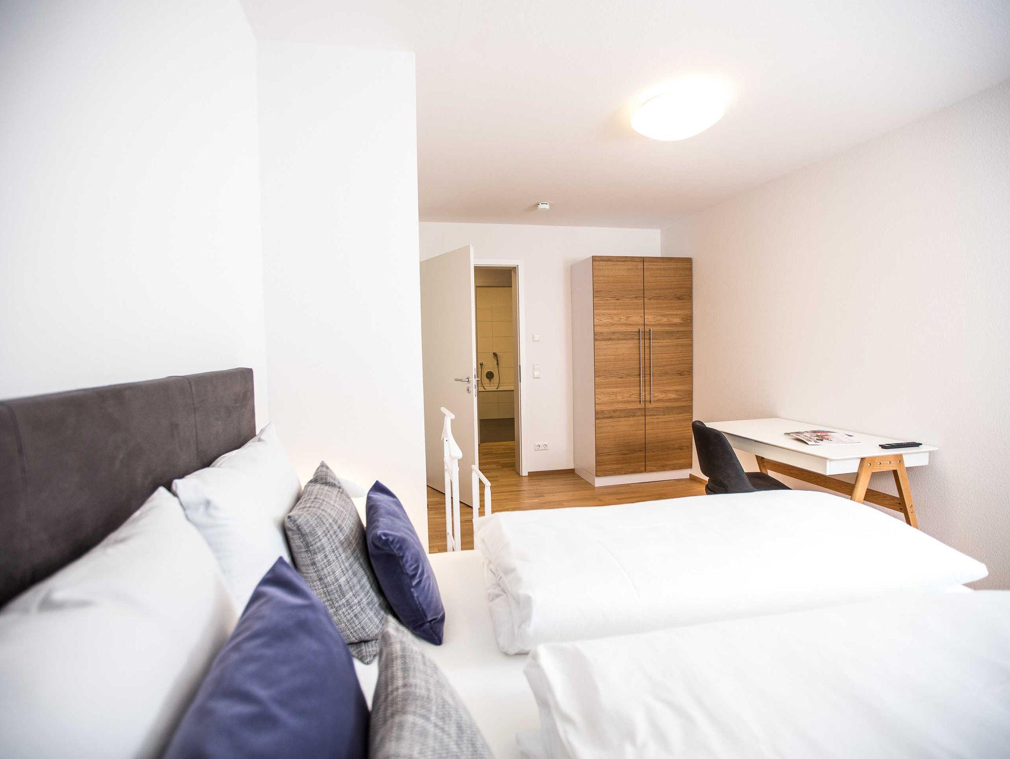 Die Neubauwohnung bietet einen Tiefgaragenstellplatz und Fahrradkeller. Die Wohnung verfügt über eine gehobene Austattung für bis zu 6 Personen, großzügiger Balkon mit Platz für bis zu 4 Personen - eigener Tiefgaragenstellplatz und Fahrradkeller direkt im Haus vorhanden.
