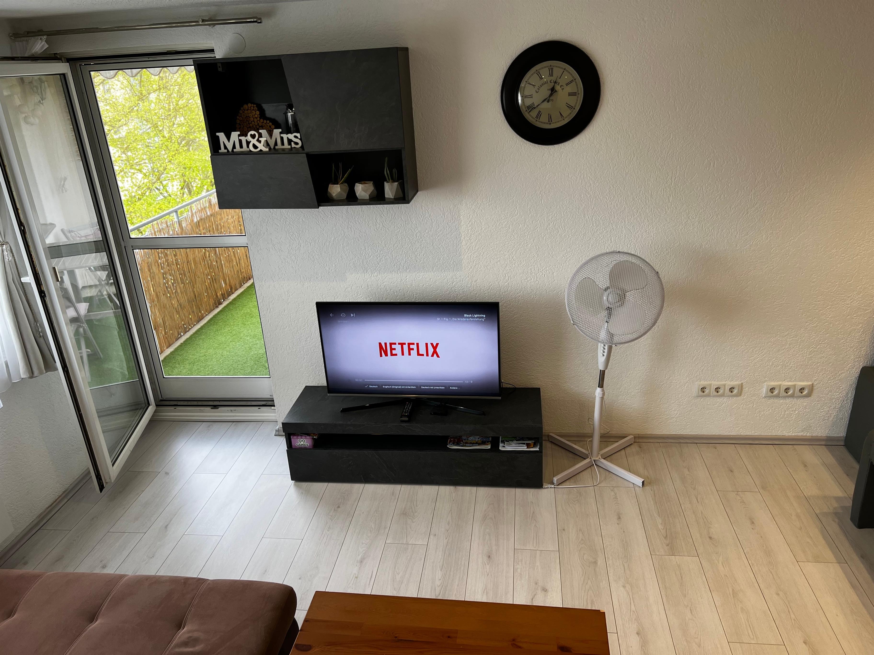 Flachbild-Sat-TV und eine voll ausgestattete Küche