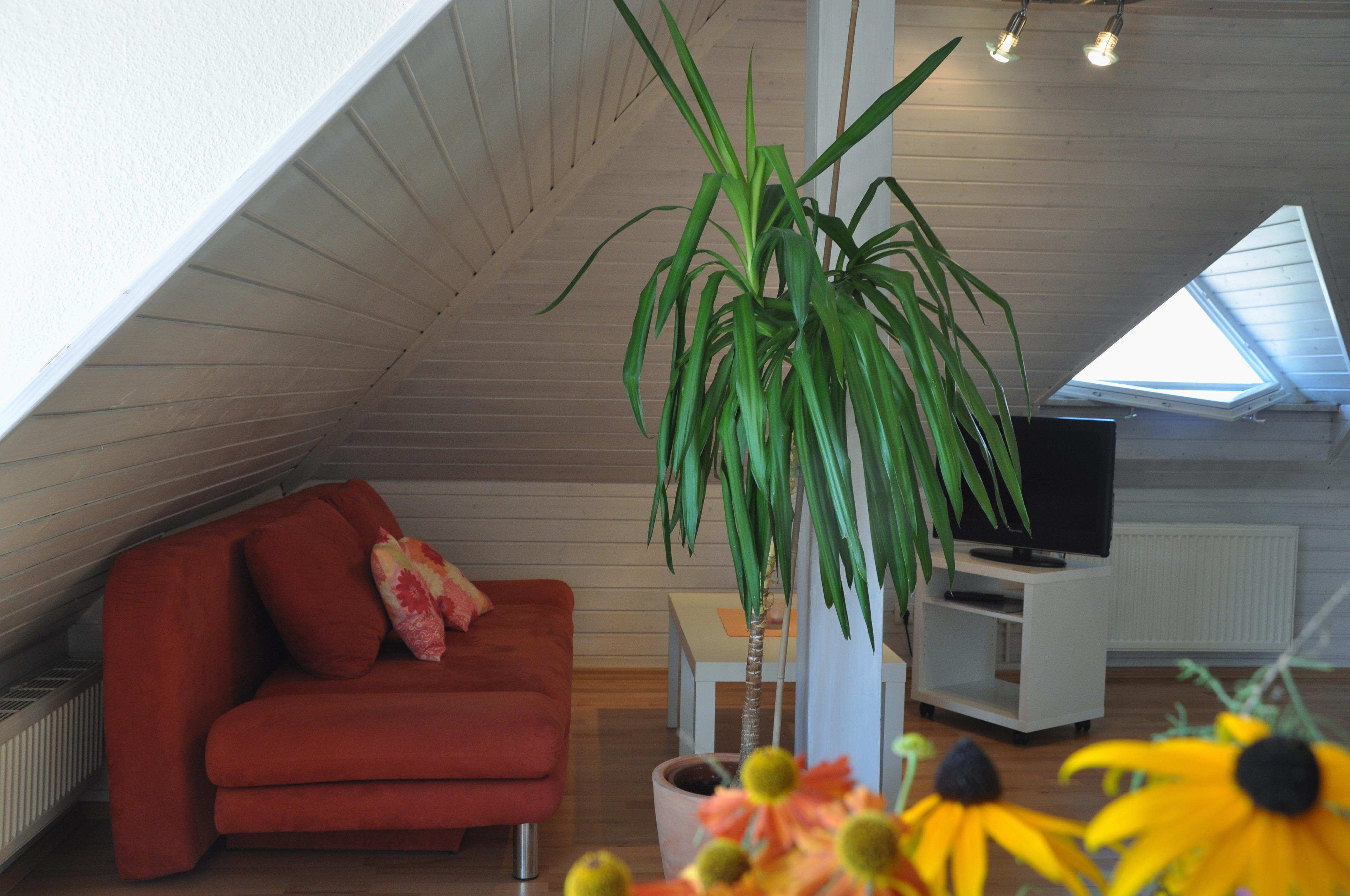 Sonnige, freundliche und gut ausgestattete Dachgeschoss-Wohnung (42 qm) in zentraler und ruhiger Lage in Fischbach (westlicher Ortsteil von Friedrichshafen). Sie bietet Ihnen ein großes Wohnzimmer mit einem schönen Essplatz und einer gemütlichen Sofaecke. Zusätzlich gibt es eine neu renovierte Wohnküche, ein kleines Bad (neu renoviert) und ein getrenntes WC. Ein separates Schlafzimmer mit großem Doppelbett.