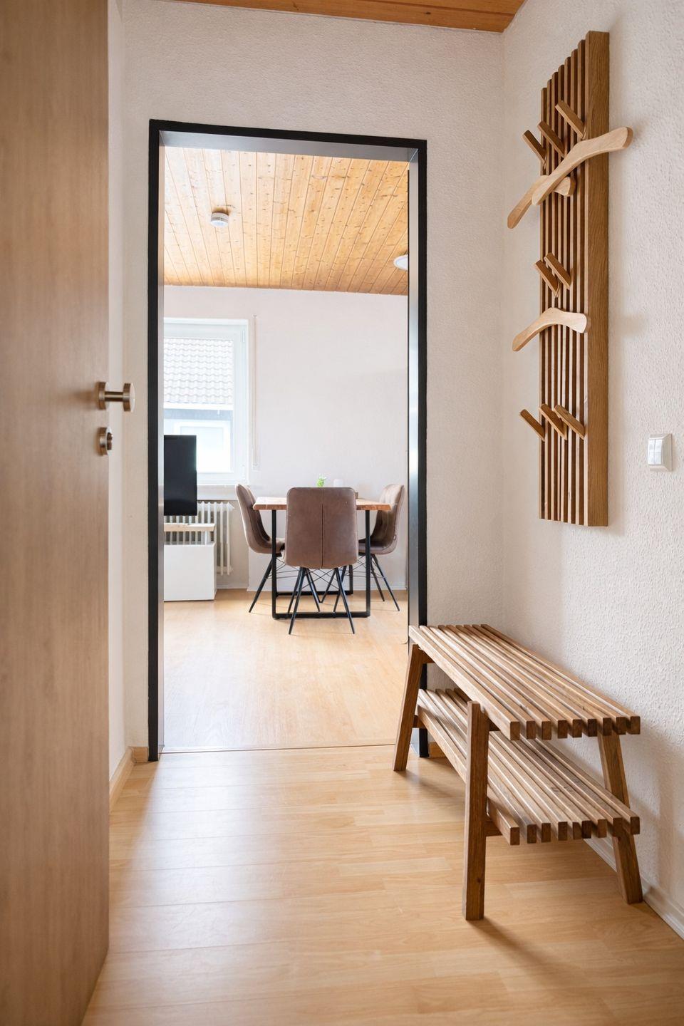 Willkommen in der Ferienwohnung 11 im Haus Naturzeit, einer großzügigen und hellen Dachgeschosswohnung mit viel Charme und herrlichem Ausblick ins Grüne. Die rund 60 m² große Nichtraucherwohnung überzeugt durch ihre warme Holzdecke, moderne Ausstattung und gemütliche Atmosphäre, die sofort zum Wohlfühlen einlädt.