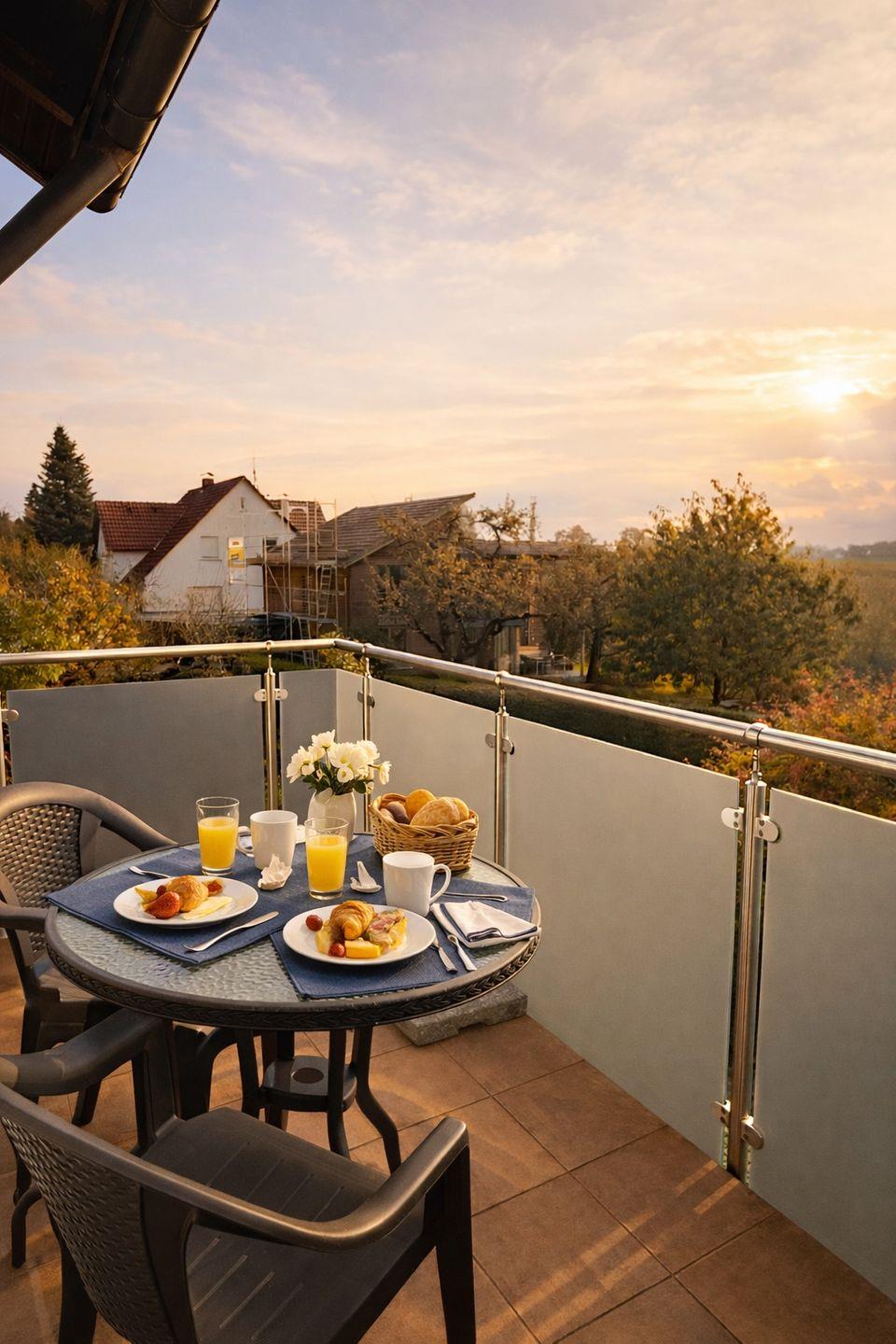Ein besonderes Highlight ist der Balkon mit Sitzgelegenheit – hier genießen Sie morgens Ihren Kaffee oder abends den Sonnenuntergang mit Blick ins Grüne.