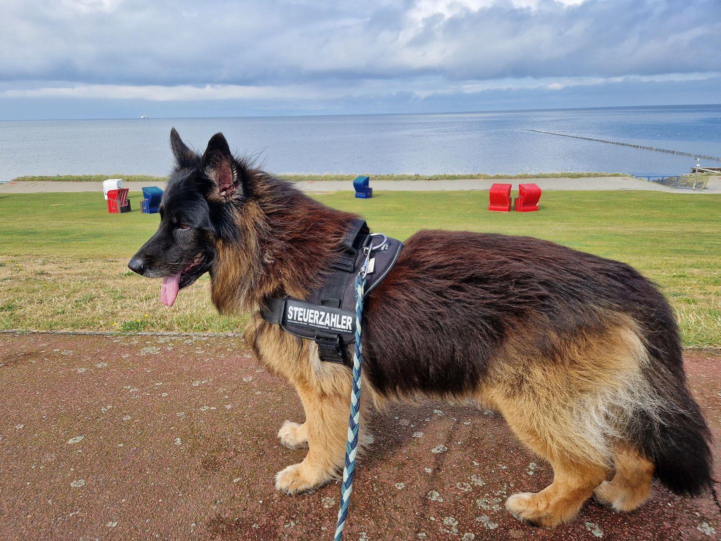 Am Hundestrand herrscht Leinenpflicht. Er ist nur über eine Treppe zu erreichen.