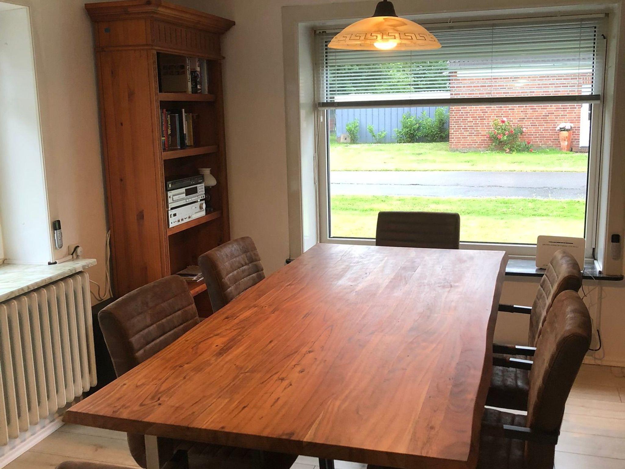 Das komfortabel eingerichtete Friedrichsköger Fischerhaus mit einer Größe von ca. 115 qm ist im Erdgeschoss mit einem gemütlichen Wohnzimmer mit Kaminofen ausgestattet. Hier findet sich ein separierter heller Essbereich mit zwei großen Fenstern und schönem Esstisch für 6 Personen. Ein Fernseher mit SAT-Anschluss, eine Musikanlage (Tuner, CD-Player) und freies WLAN in bester Qualität sind vorhanden.