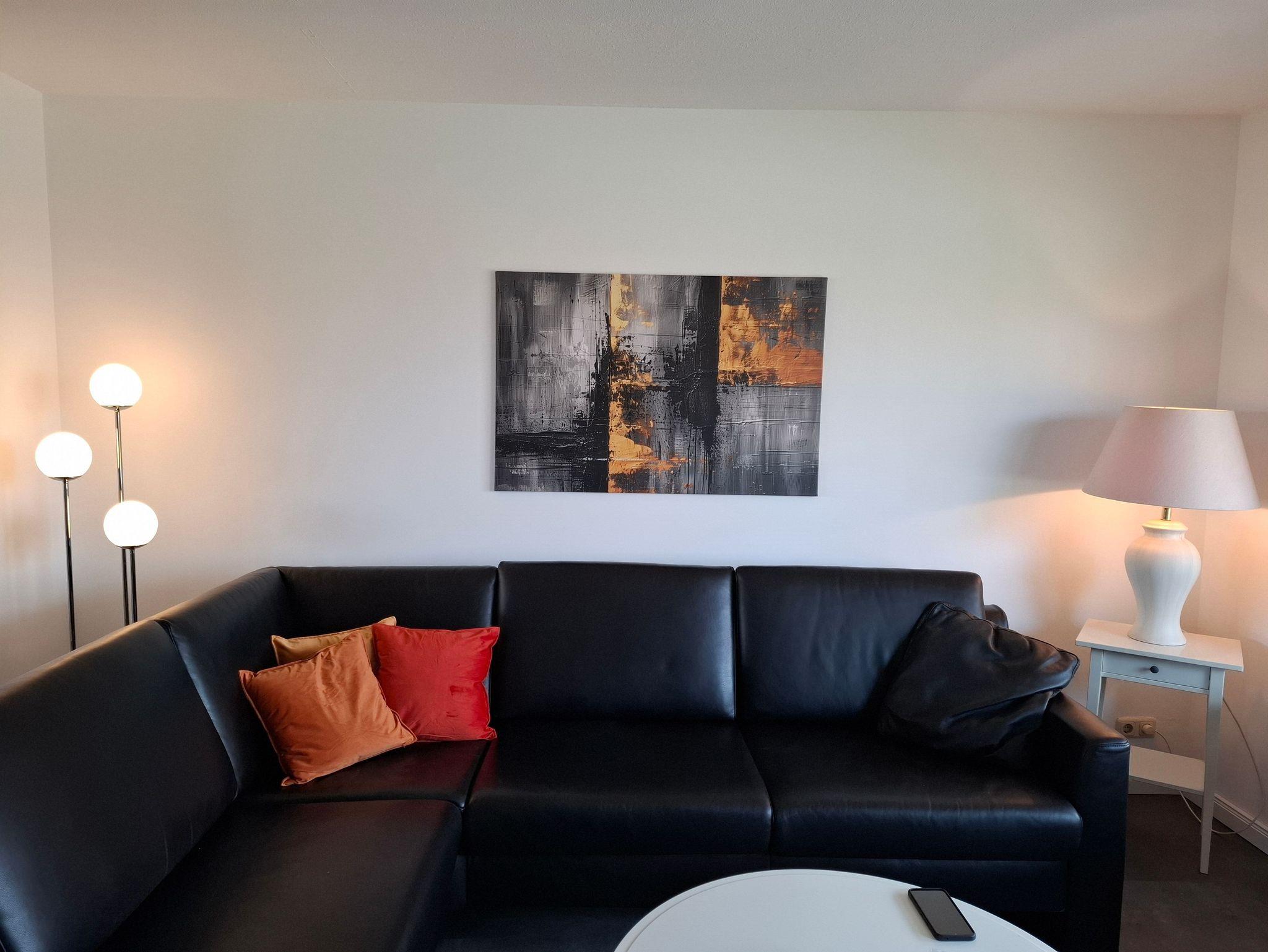 Kleine Auszeit (100 qm, OG) ebenfalls für bis zu 5 Personen, modern eingerichtet und mit gemütlichem Kamin.