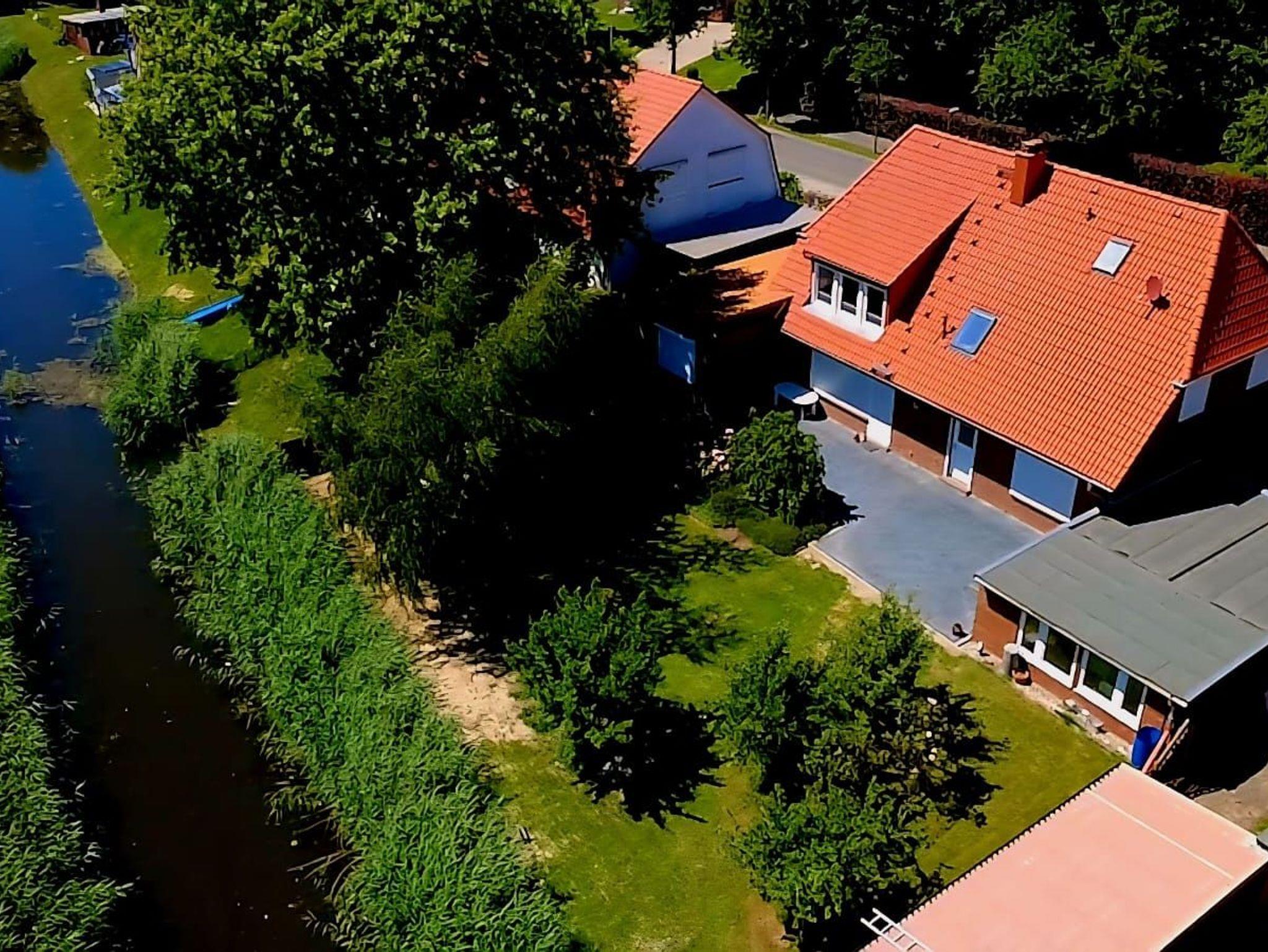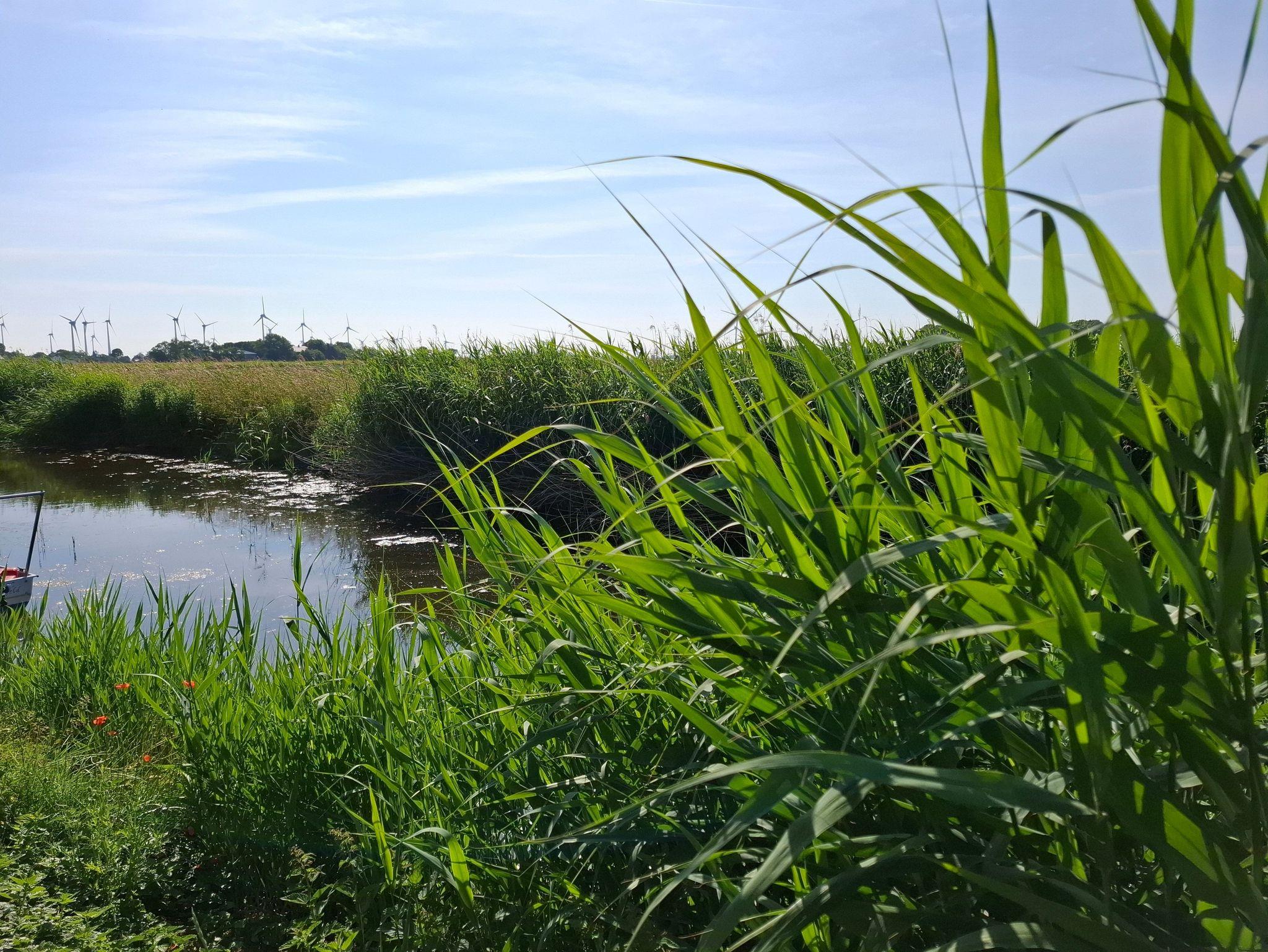Ruhige, sonnige Terrasse direkt am Fleet, umgeben von Obstbäumen und Natur