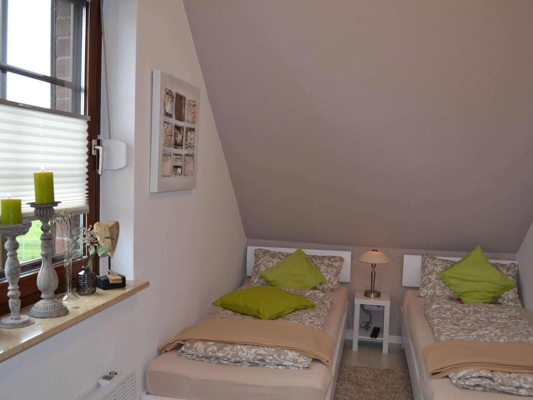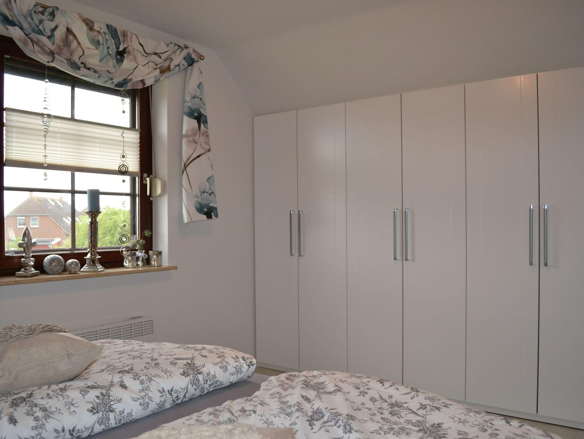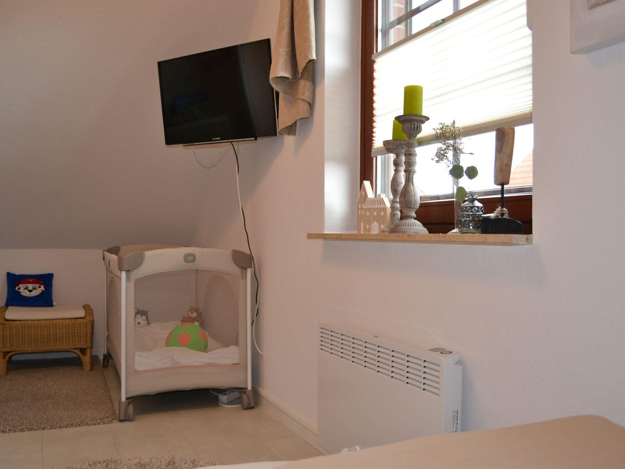 In zwei gemütlichen Schlafzimmern im Obergeschoss finden bis zu 4 Personen Platz. In einem Schlafzimmer befindet sich ein komfortables Boxspringbett, ein weiteres Schlafzimmer ist mit Einzelbetten ausgestattet. Ein Kinderreisebett sowie ein Hochstuhl stehen unseren kleinsten Gästen kostenfrei zur Verfügung. Ein WC im Obergeschoss sowie ein modernes Badezimmer im Untergeschoss sind im Ferienhaus Nordseeruhe vorhanden. Wachmaschine und ein Wäschetrockner stehen Ihnen zur freien Verfügung.