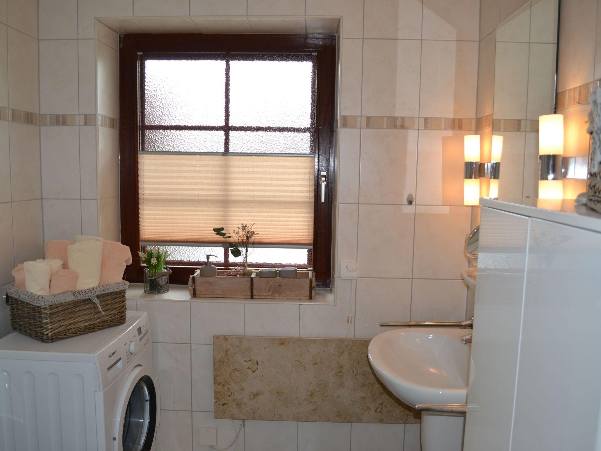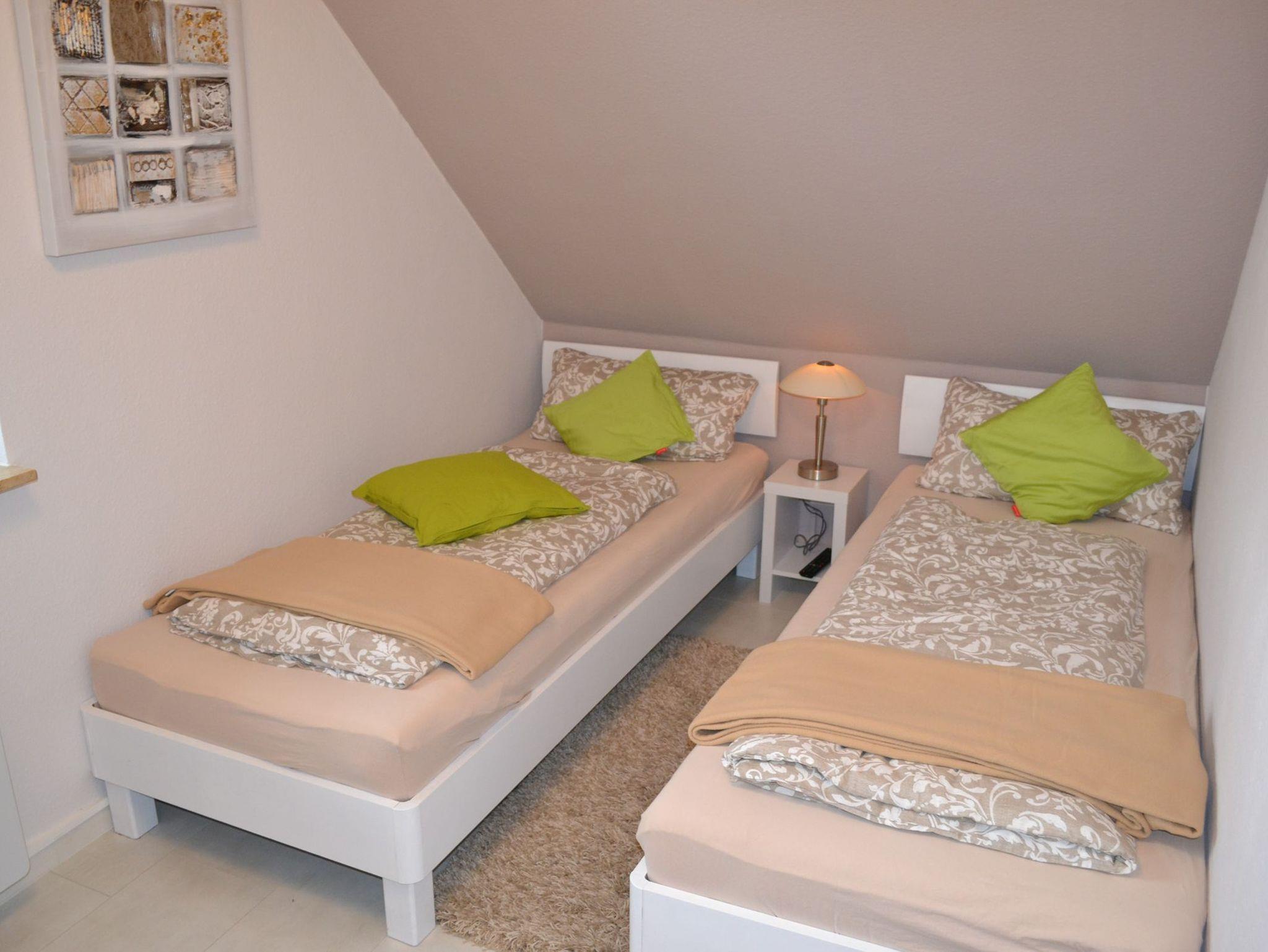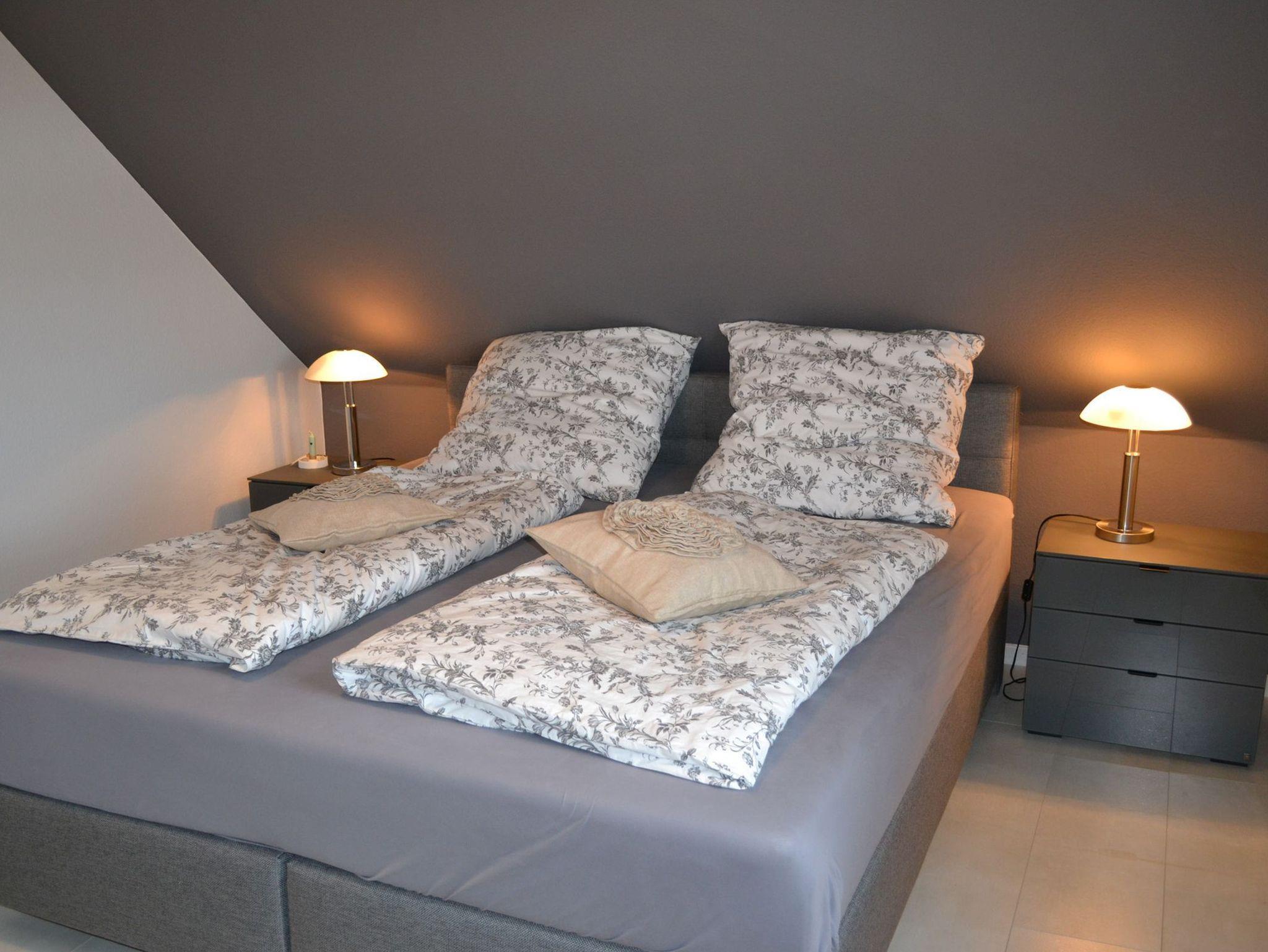 In zwei gemütlichen Schlafzimmern im Obergeschoss finden bis zu 4 Personen Platz. In einem Schlafzimmer befindet sich ein komfortables Boxspringbett, ein weiteres Schlafzimmer ist mit Einzelbetten ausgestattet. Ein Kinderreisebett sowie ein Hochstuhl stehen unseren kleinsten Gästen kostenfrei zur Verfügung. Ein WC im Obergeschoss sowie ein modernes Badezimmer im Untergeschoss sind im Ferienhaus Nordseeruhe vorhanden. Wachmaschine und ein Wäschetrockner stehen Ihnen zur freien Verfügung.