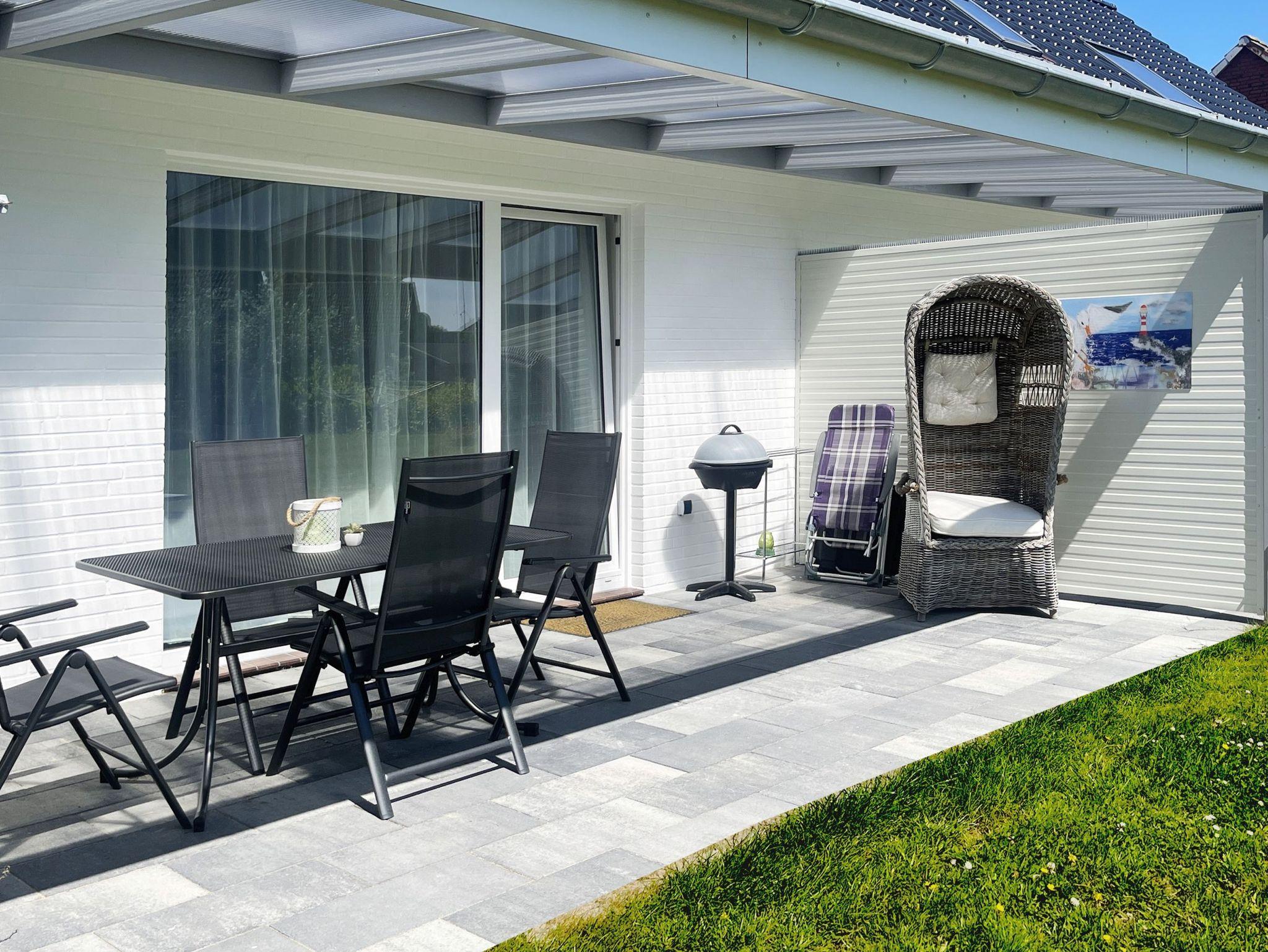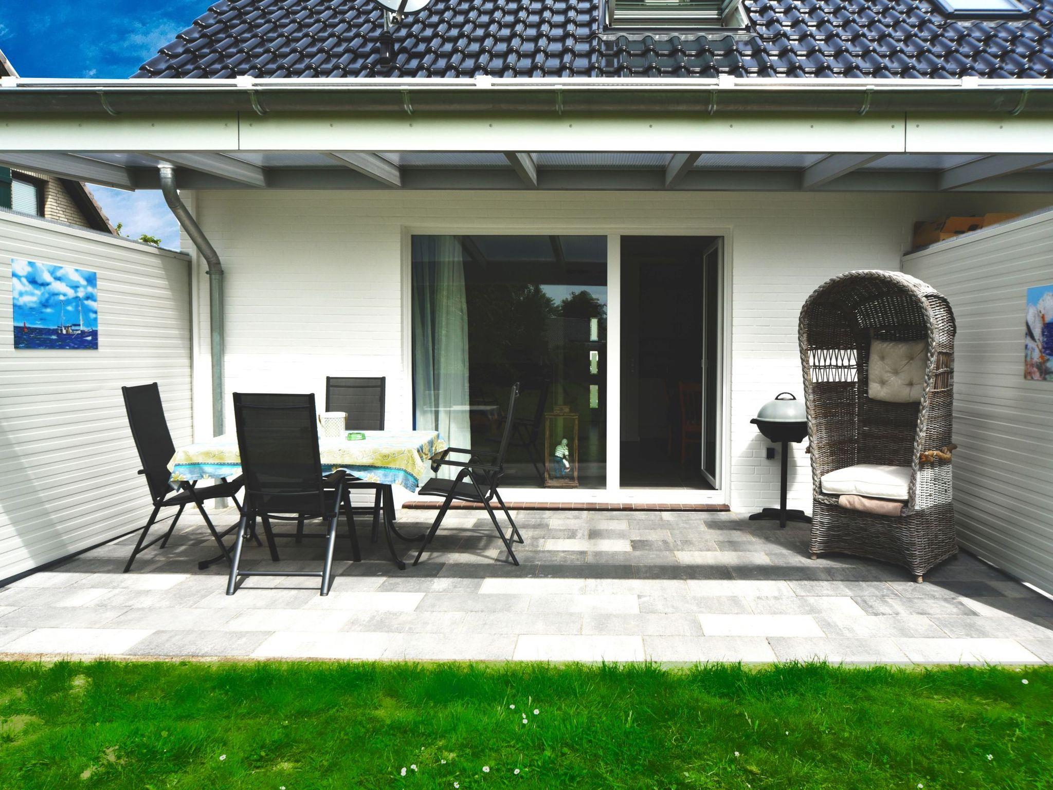 Ihre gemütliche Strandhaus-Wohnung B ist ebenerdig erreichbar und hat eine überdachte Terrasse mit direktem Gartenzugang.