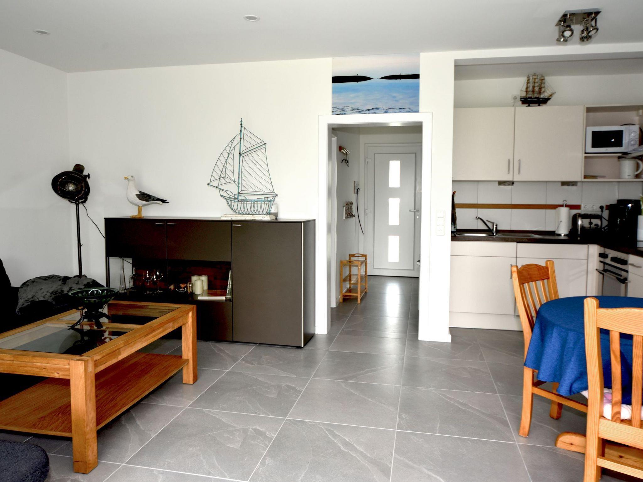 Ebenerdig, direkter Zugang vom Parkplatz, Wallbox-Zugang (kostenpflichtige Nutzung), Nichtraucher-Wohnung mit moderner Elektroheizung, überdachte Terrasse, Sonnenschirm und Strandkorb auf der Veranda, Elektrogrill, Terrassenheizung auf Wunsch, Küche (offen), Spülmaschine, Kühlschrank, Gefriermöglichkeit, Kaffeevollautomat, plus Senseo-Padmaschine, plus normale Kaffeemaschine, Mikrowelle, Rührgerät, Spülmaschine, Ceranfeld, Backofen, 2-Personen-Schlafsofa, Smart-SAT-TV, DVD-Player, Google-Assistant, Stereoanlage, Playstation, Doppelbett, Schlafzimmer-TV, Tageslicht-Duschbad/WC, Haartrockner, fakultativ Kinderbett/Hochstuhl, fakultativ Wäschepaket, schnelles Internet/ WLAN o.B., Tiere nicht erlaubt