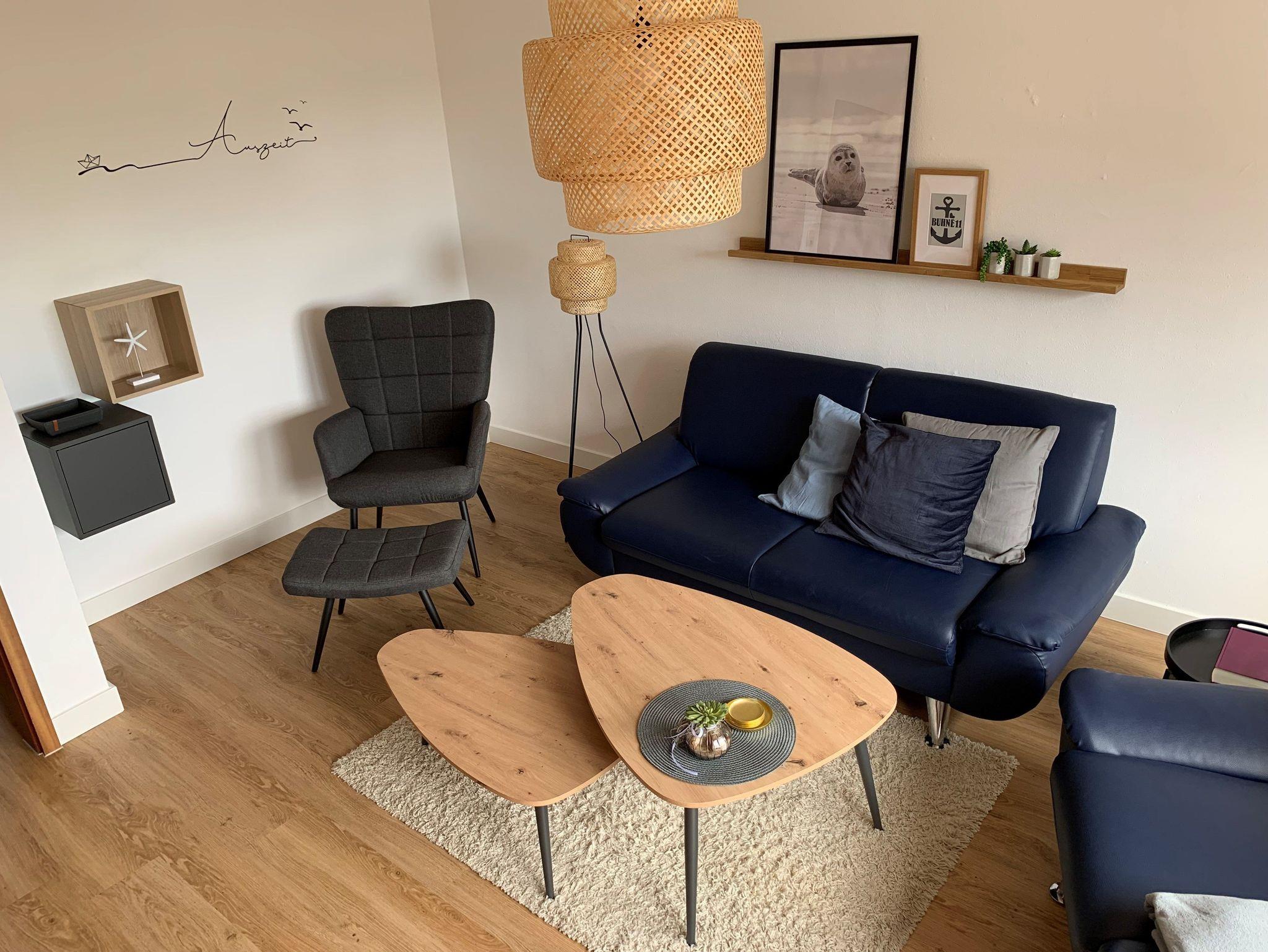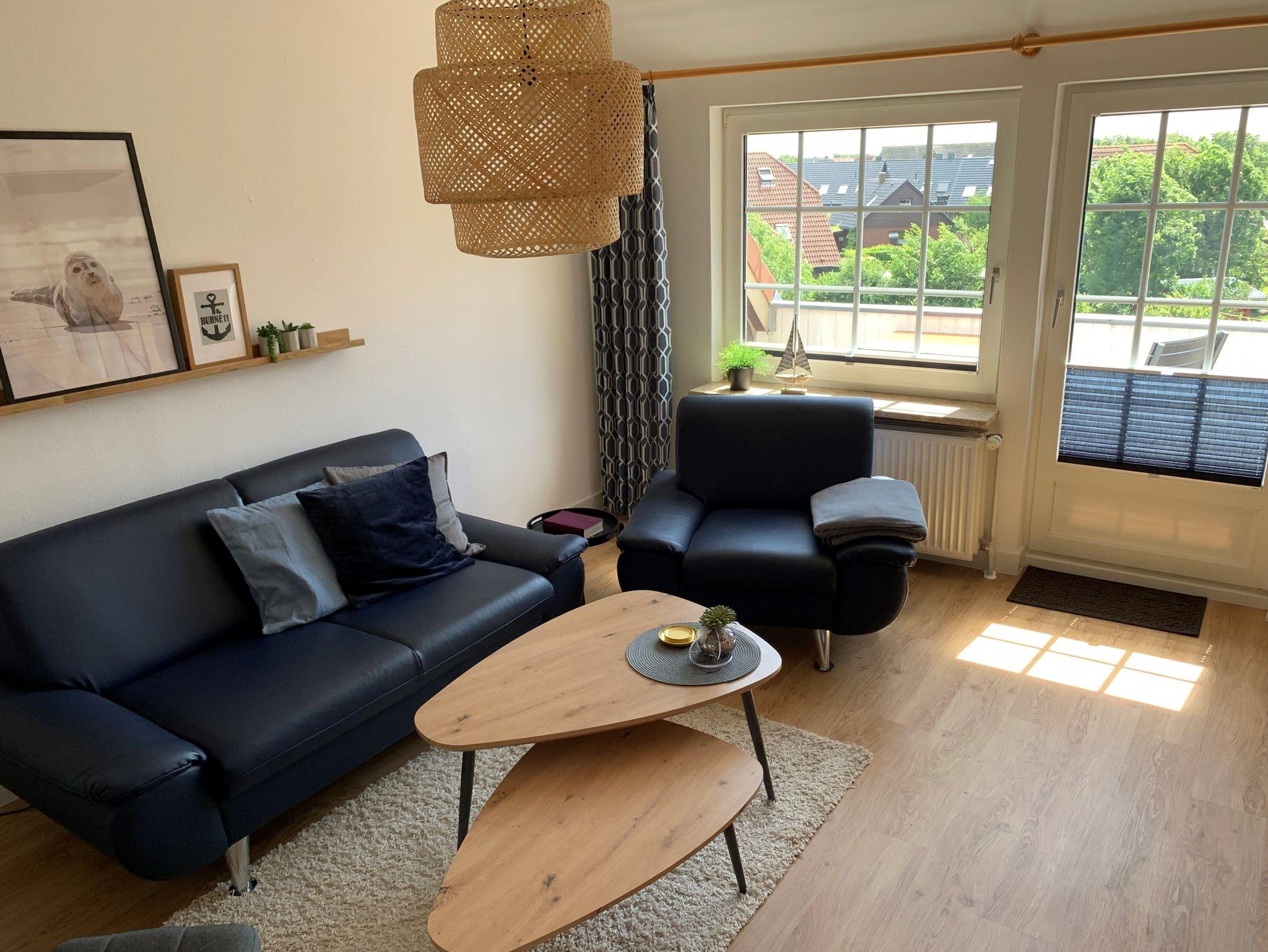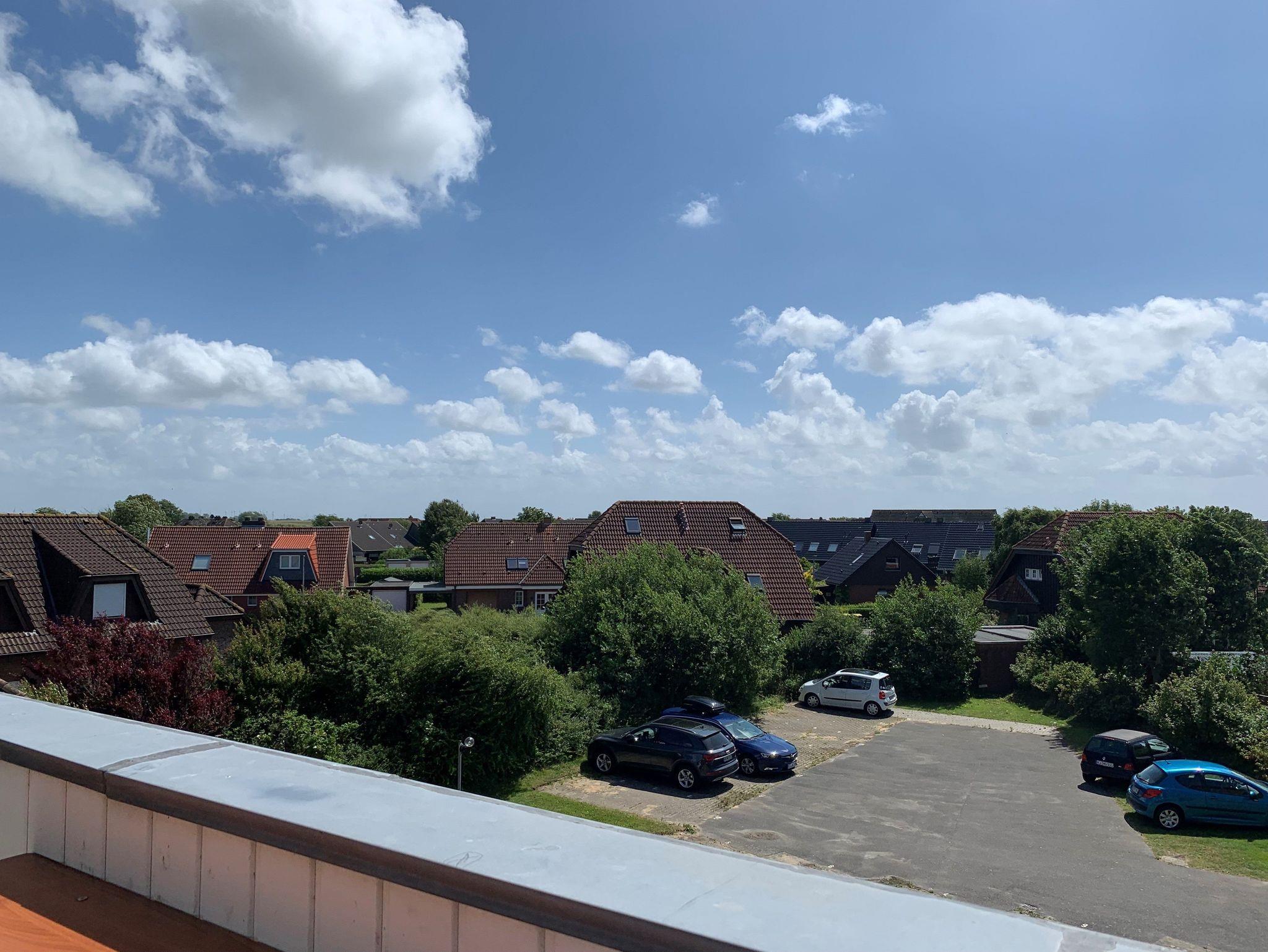 Morgens begrüßt Sie in der voll ausgestatteten Küche die Sonne. Frische Brötchen erhalten Sie in der Bäckerei im Erdgeschoss. Vom gemütlichen Wohnzimmer aus führt eine Raumspartreppe ins Dachgeschoss, wo sich das Elternschlafzimmer mit einem Doppelbett befindet und vom dem aus Sie einen herrlichen Blick über den Deich und auf das Wattenmeer haben. Ein weiteres kleines Schlafzimmer mit zwei Schlafplätzen im Ausziehbett ist in der unteren Etage vorhanden. Auf der schönen Loggia können Sie vom späten Vormittag bis zum Abend die Sonne genießen. Die 2022/23 teilmodernisierte Wohnung verfügt über einen kostenfreien WLAN-Zugang. Ein eigener Stellplatz befindet sich auf dem Grundstück.