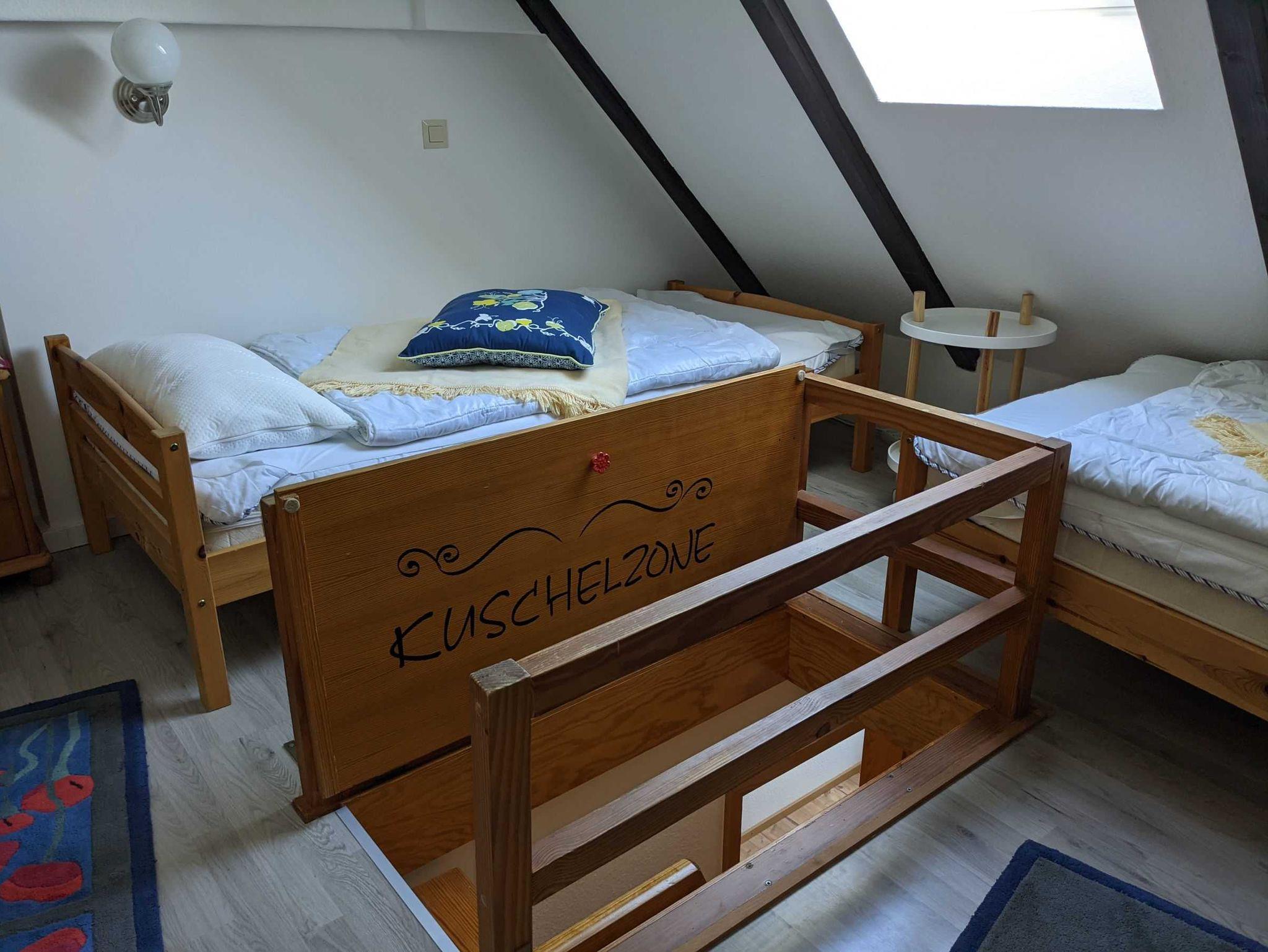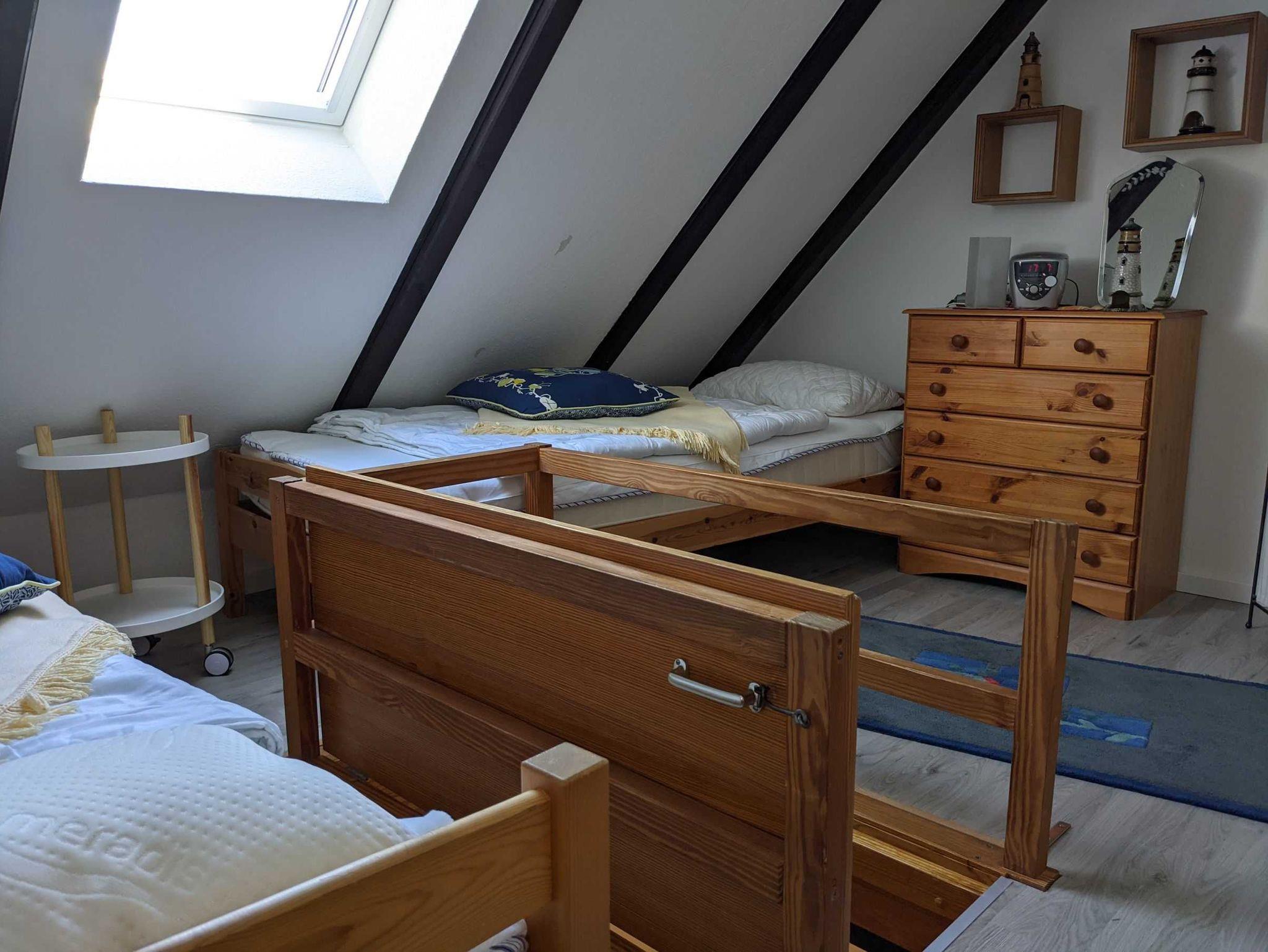 • 1 kleineres Schlafzimmer im DG über eine Raumspartreppe erreichbar (nicht für Kleinkinder geeignet) (Bett 0,90 x 2 m)