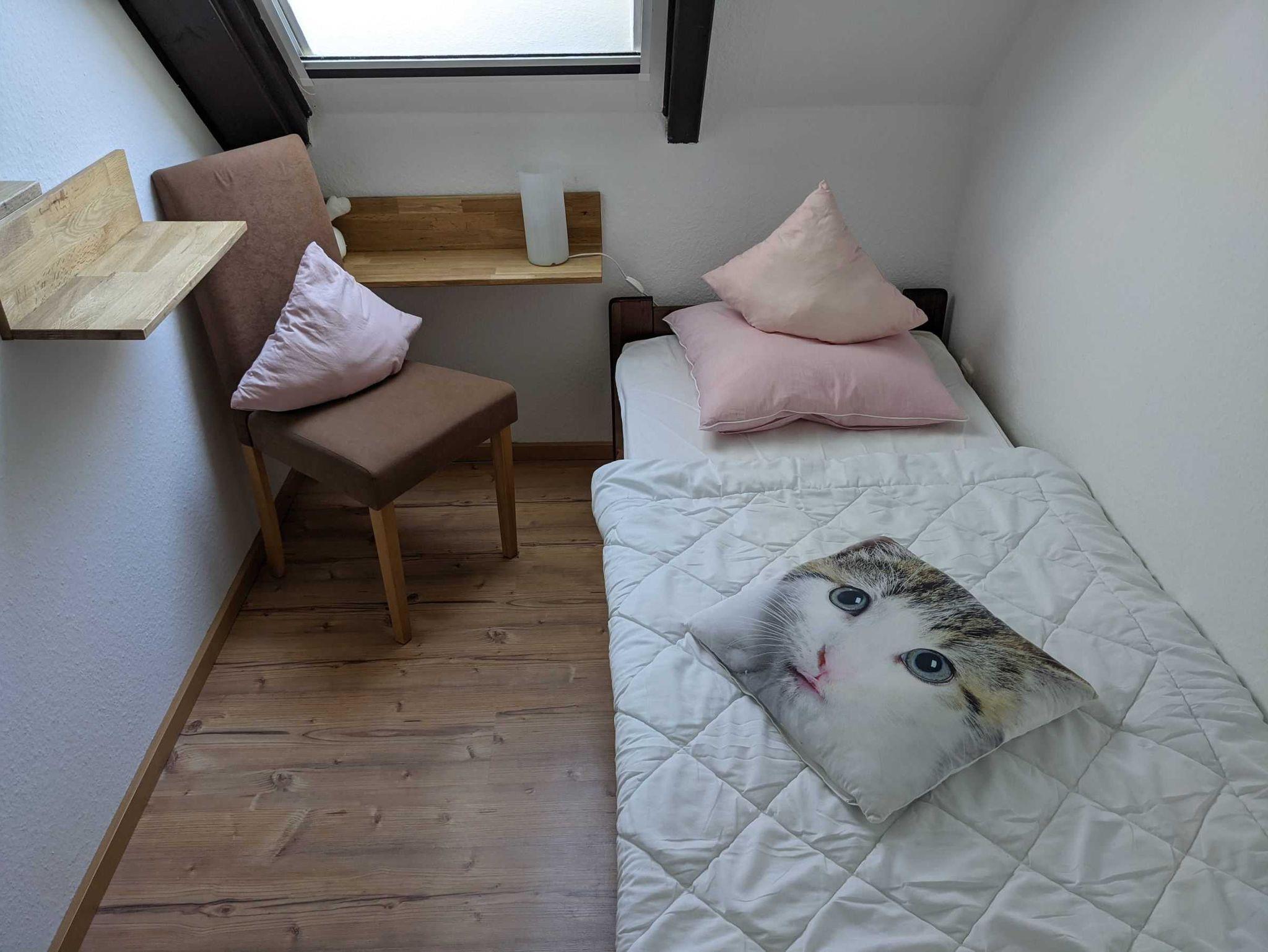 • 1 kleines Schlafzimmer im 1. OG (Bett 80cm x 2m)