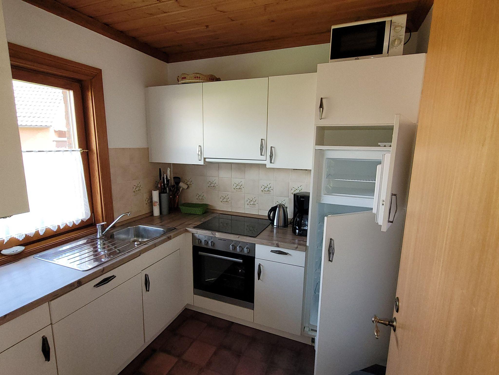 Erdgeschoss, bis 3 Personen, ca. 50 m² große, gemütliche Wohnung mit Kieferndecken. In der Wohnung befinden sich: Flur, kleiner Abstellraum, gemütlicher Wohn-/Schlafraum mit Essecke, Badezimmer mit Wanne und Dusche, separate Küche mit Einbauküche. Bitte Informieren Sie sich.
