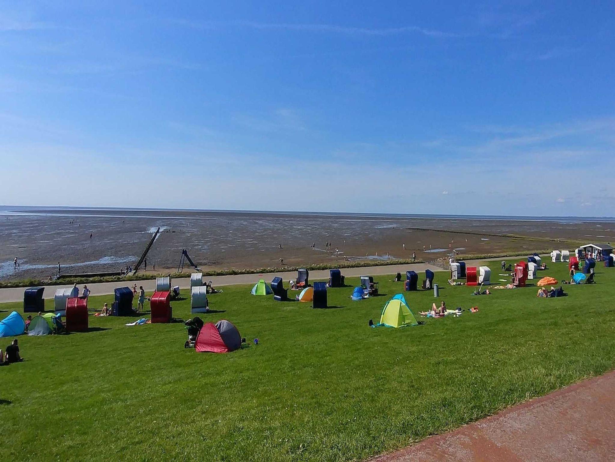 Das Haus liegt nur 300 Meter von der Nordsee entfernt. Sobald Sie aus der Tür treten, blicken Sie direkt auf den Deich.