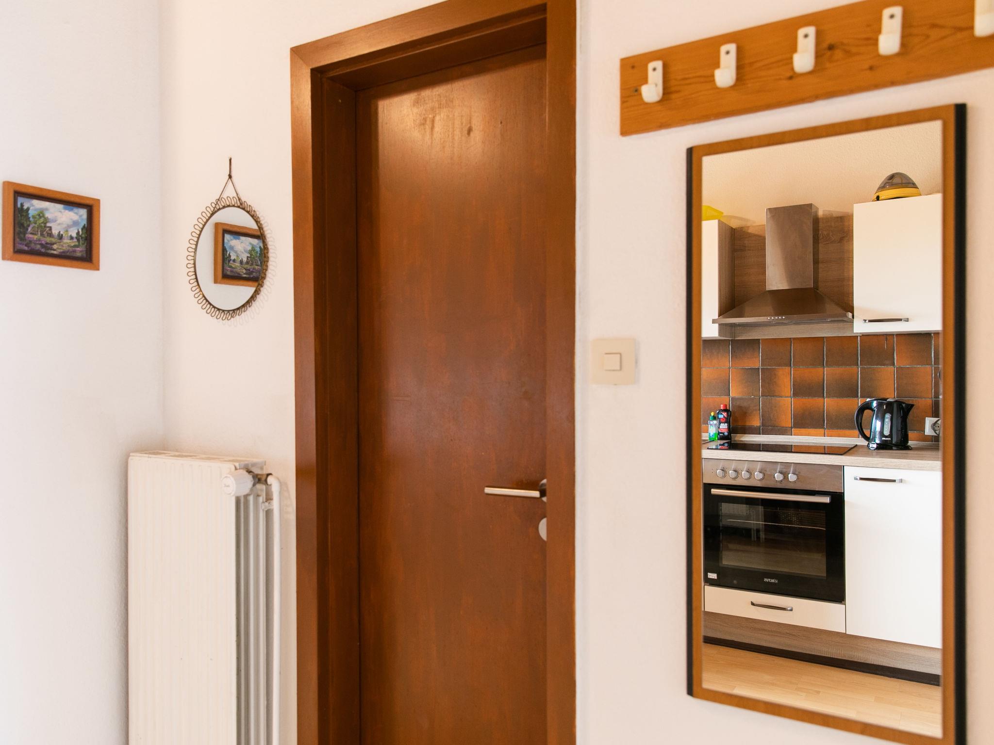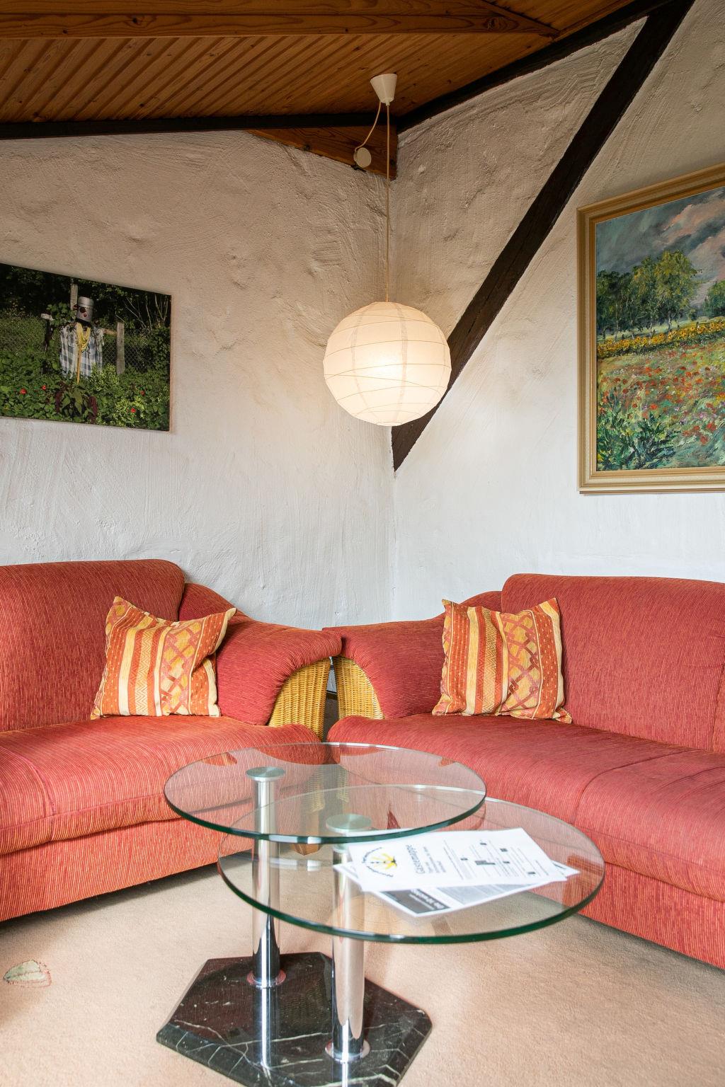 3-room apartment 45 m2 on 1st floor. Practical furnishings: living/dining room with dining table and satellite TV (flat screen), radio and DVD. Exit to the balcony. 1 room with 1 double bed. 1 room with 2 beds. Open kitchen (oven, 4 ceramic glass hob hotplates, toaster, kettle, electric coffee machine). Shower/WC. Oil heating. Balcony furniture. Panoramic view. Facilities: children's high chair, baby cot. Internet (WiFi, free). Parking (1 car). Please note: non-smokers only. Smoke alarm, fire extinguisher. Access via external staircase and balcony. Bookings accepted for holiday purposes only.