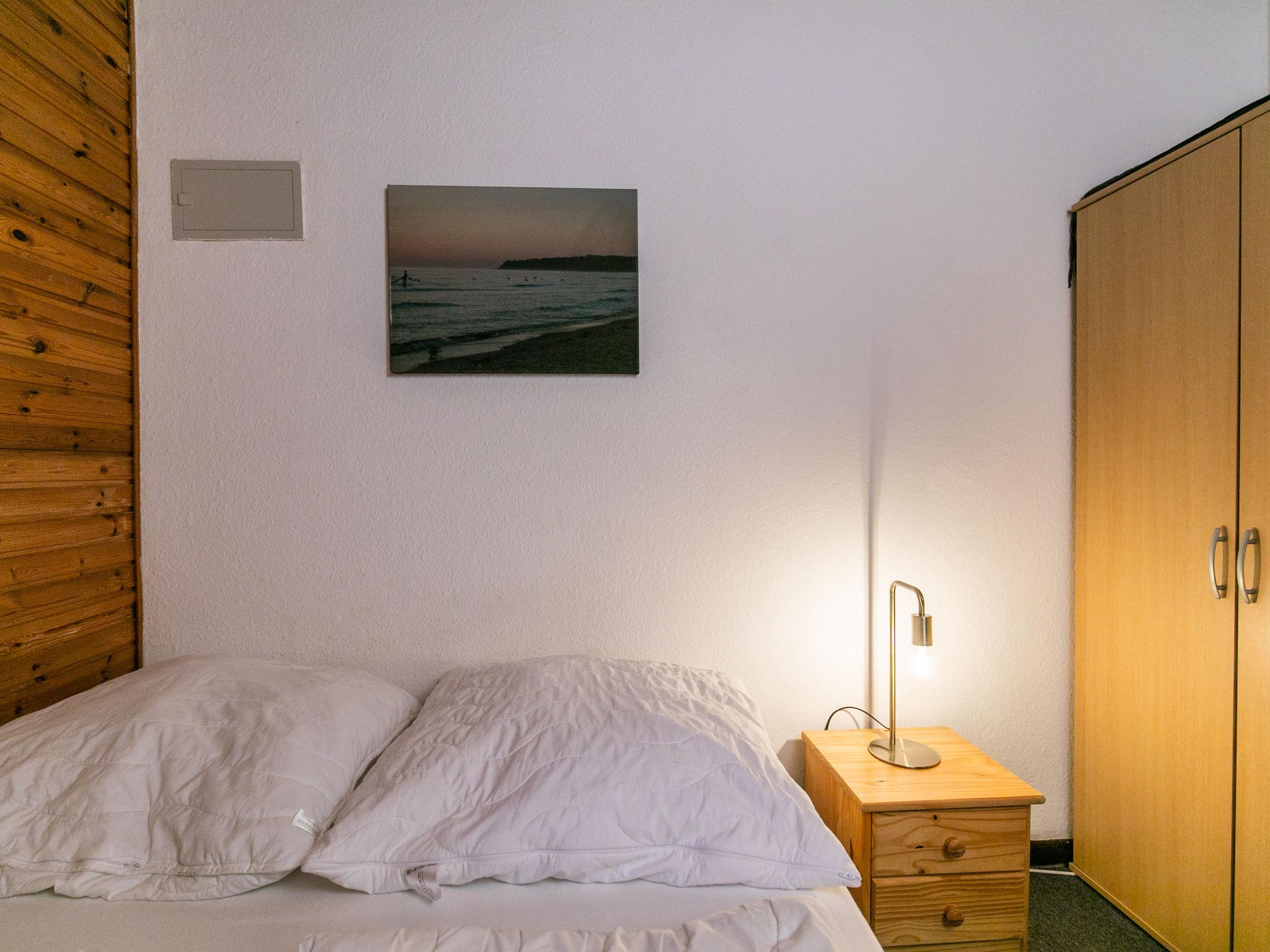 3-room apartment 40 m2, on the ground floor. Practical furnishings: living/dining room with dining table and satellite TV (flat screen), radio and DVD. Exit to the terrace. 1 room with 1 french bed (140 cm, length 200 cm). 1 room with 2 beds. Open kitchen (oven, 4 ceramic glass hob hotplates, toaster, kettle, electric coffee machine). Shower/WC. Terrace furniture. Panoramic view. Facilities: children's high chair. Internet (WiFi, free). Parking (1 car). Please note: non-smokers only. Smoke alarm, fire extinguisher. Bookings accepted for holiday purposes only.