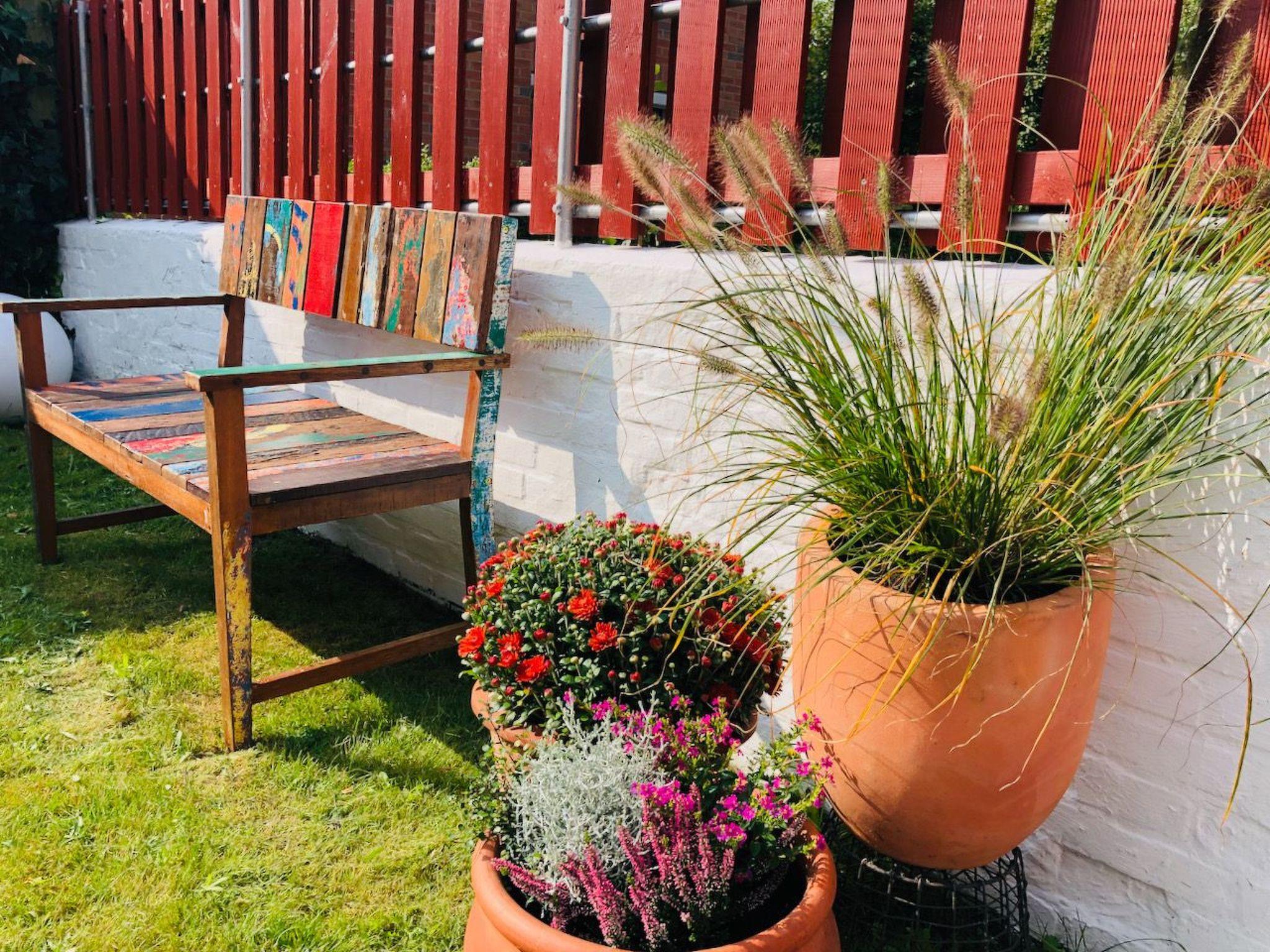 Bicycles and all the bulky items you need are safely stored outside in the little Swedish house. Charging facilities for e-bikes are of course available. The terrace and the garden with barbecue fireplace invite you to sit outside on warm summer evenings. Deckchairs, seating set, parasol and garden bench are available for your time out in the open.