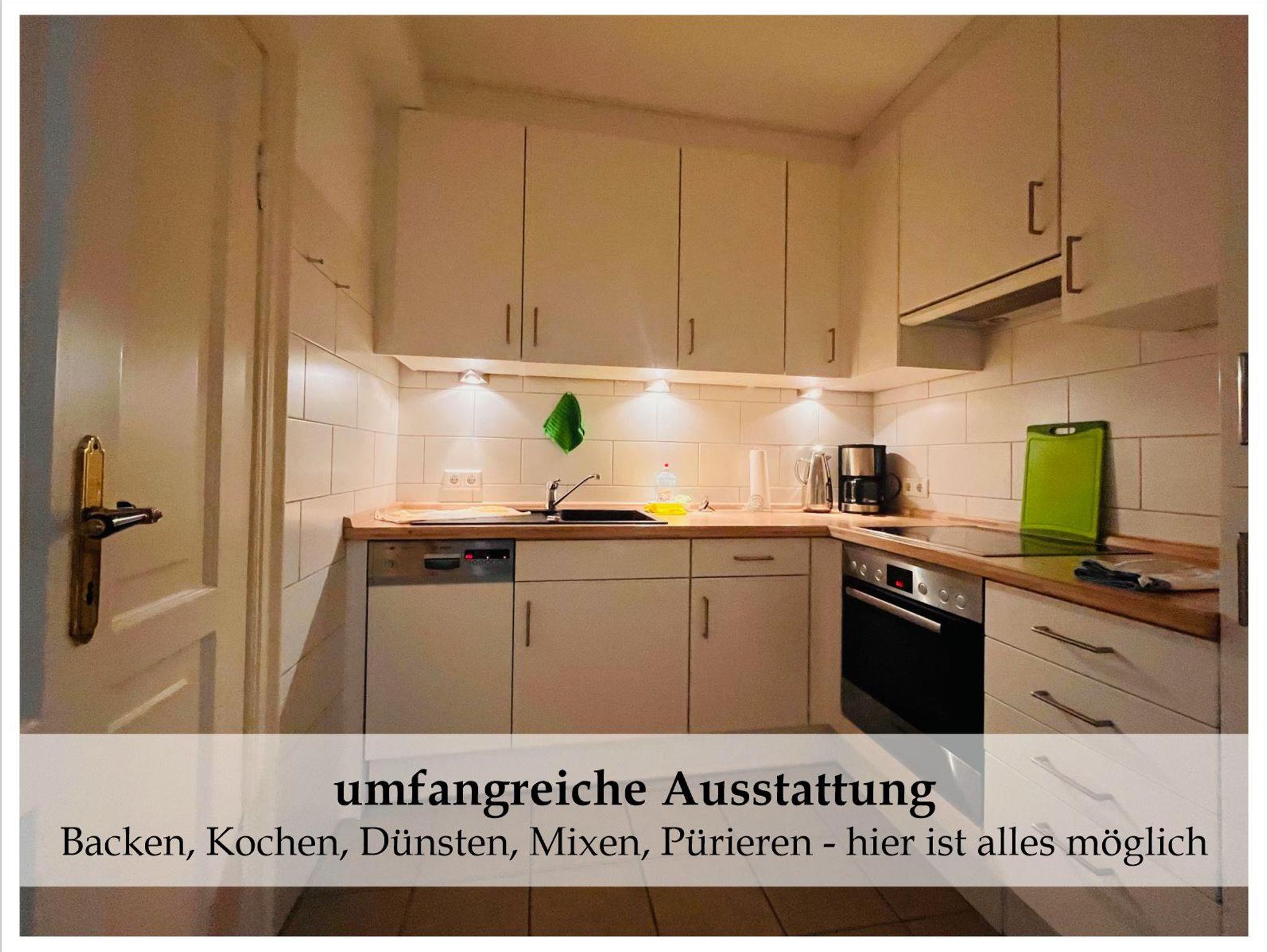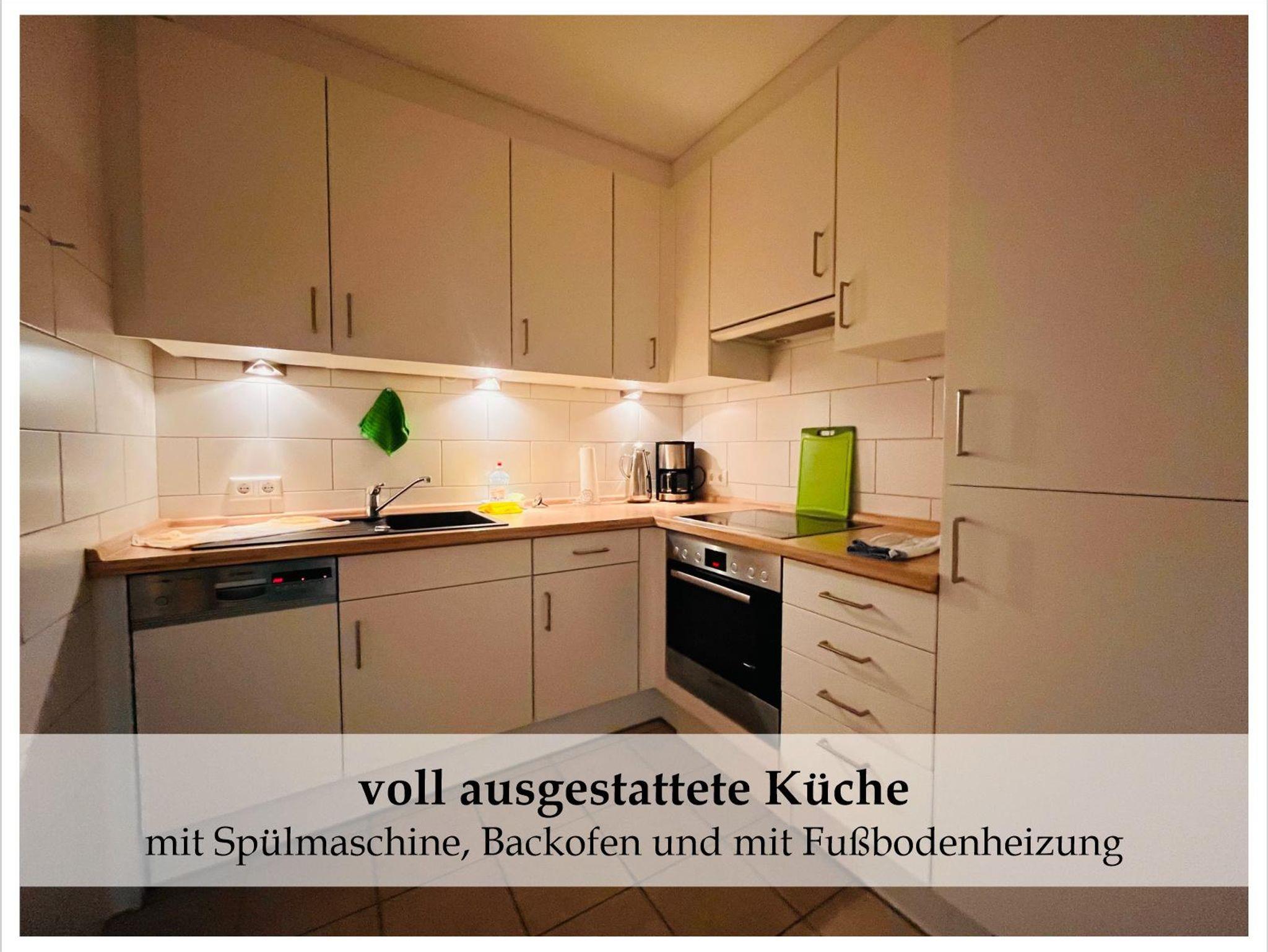 Die moderne voll ausgestattete Küche bietet Ihnen jederzeit die Möglichkeit sich selbst zu versorgen und zu verwöhnen. Die Küche ist ausgestattet mit: Cerankochfeld, Heißluftbackofen, Abzughaube, große Kühl-/Gerfrierkombination, Toaster und Kaffeemaschine.