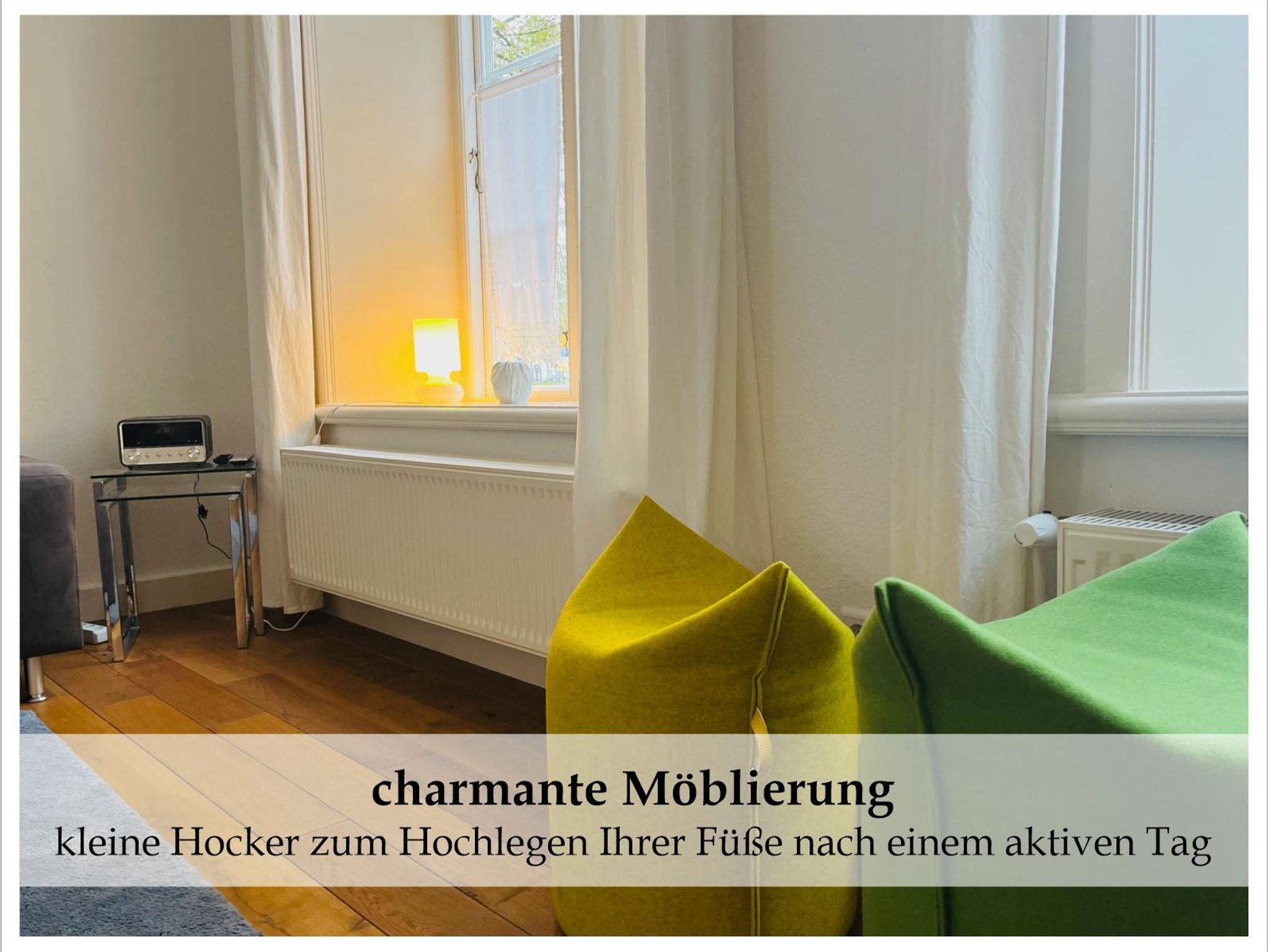 Stilvoll und mit Qualitätsbewusstsein haben Ihre Gastgeber die 2-Zimmer Wohnung mit 50 qm im Erdgeschoss gestaltet. Hochwertige Eichendielen und hohe Altbaudecken mit dänischen Fenstern schaffen Gemütlichkeit, Licht und Raum.