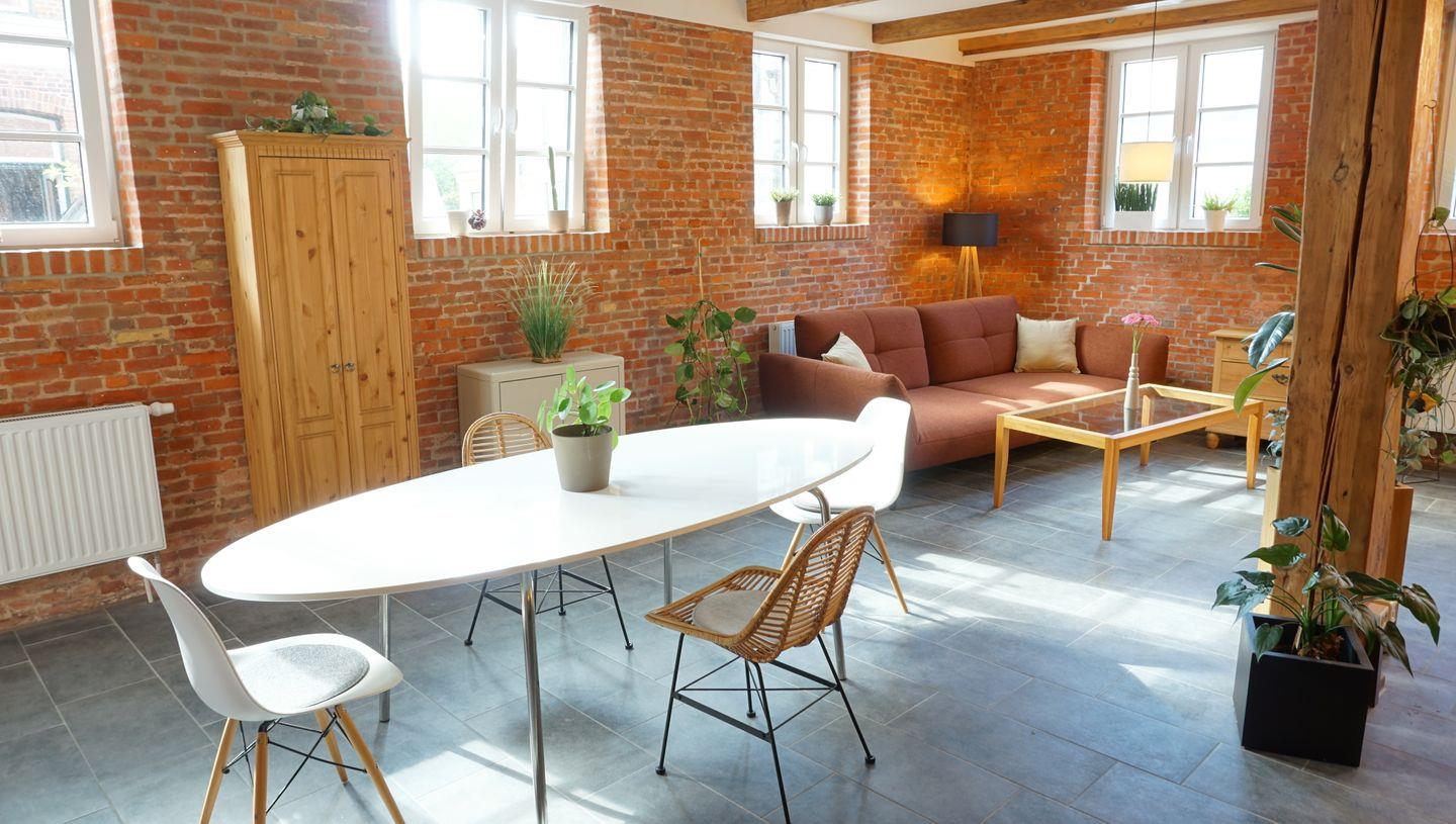 Entdecken Sie Nordfriesland hautnah: Unser großzügiges Ferienhaus bietet mit 140m² Platz für bis zu 6 Personen und verzaubert mit seinem einzigartigen Charme. Durch die geschickte Kombination aus traditionellen Elementen wie alten Balken aus der historischen Töpferei und modernen Akzenten entsteht eine unvergleichliche Atmosphäre.