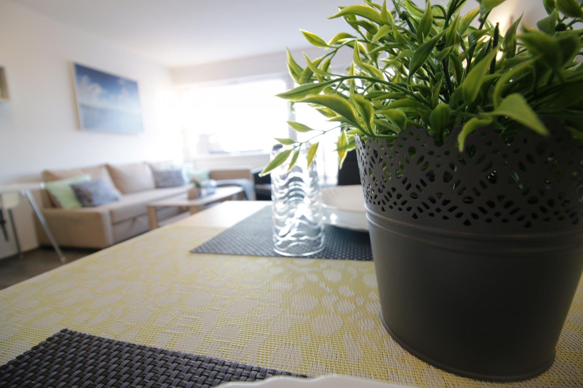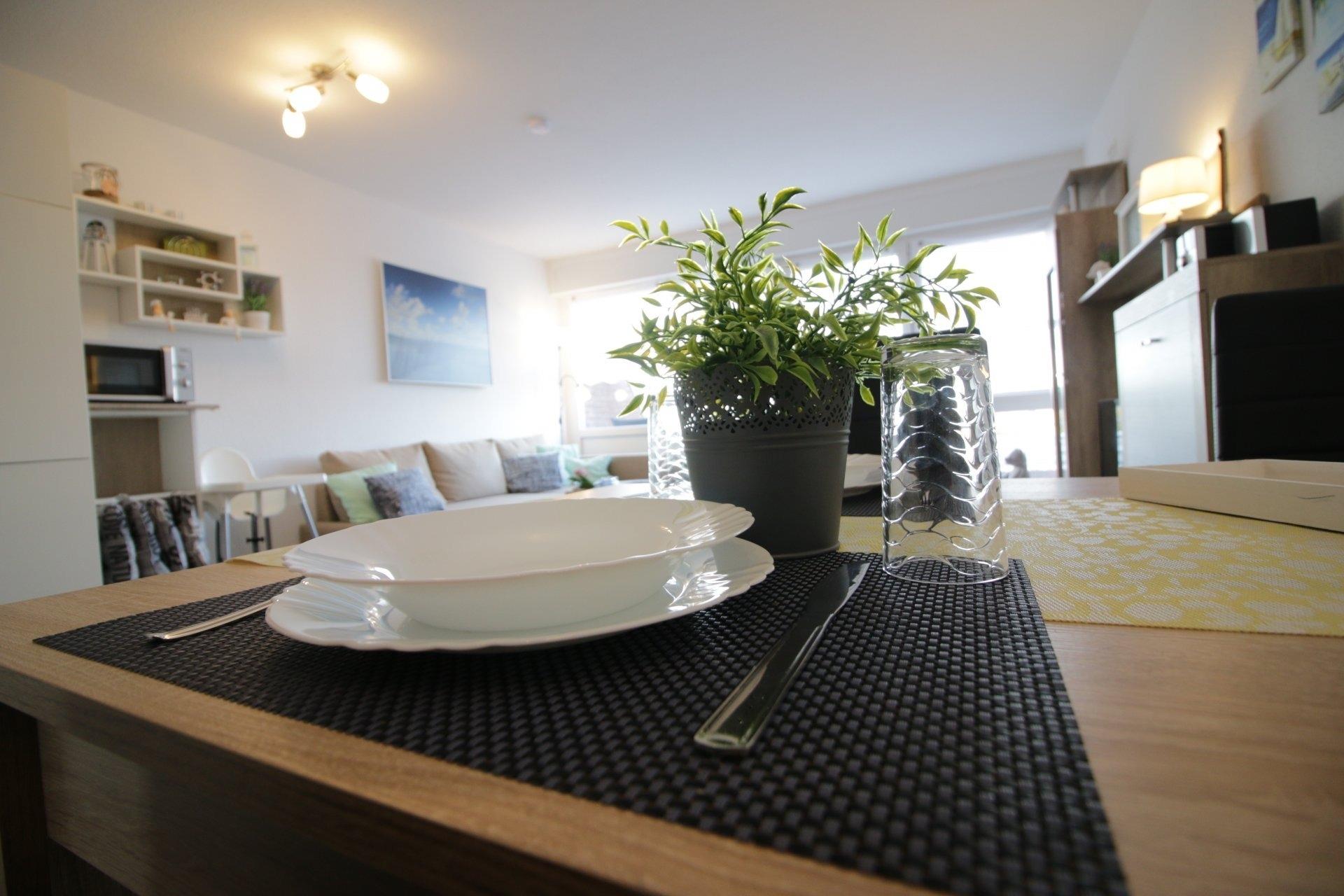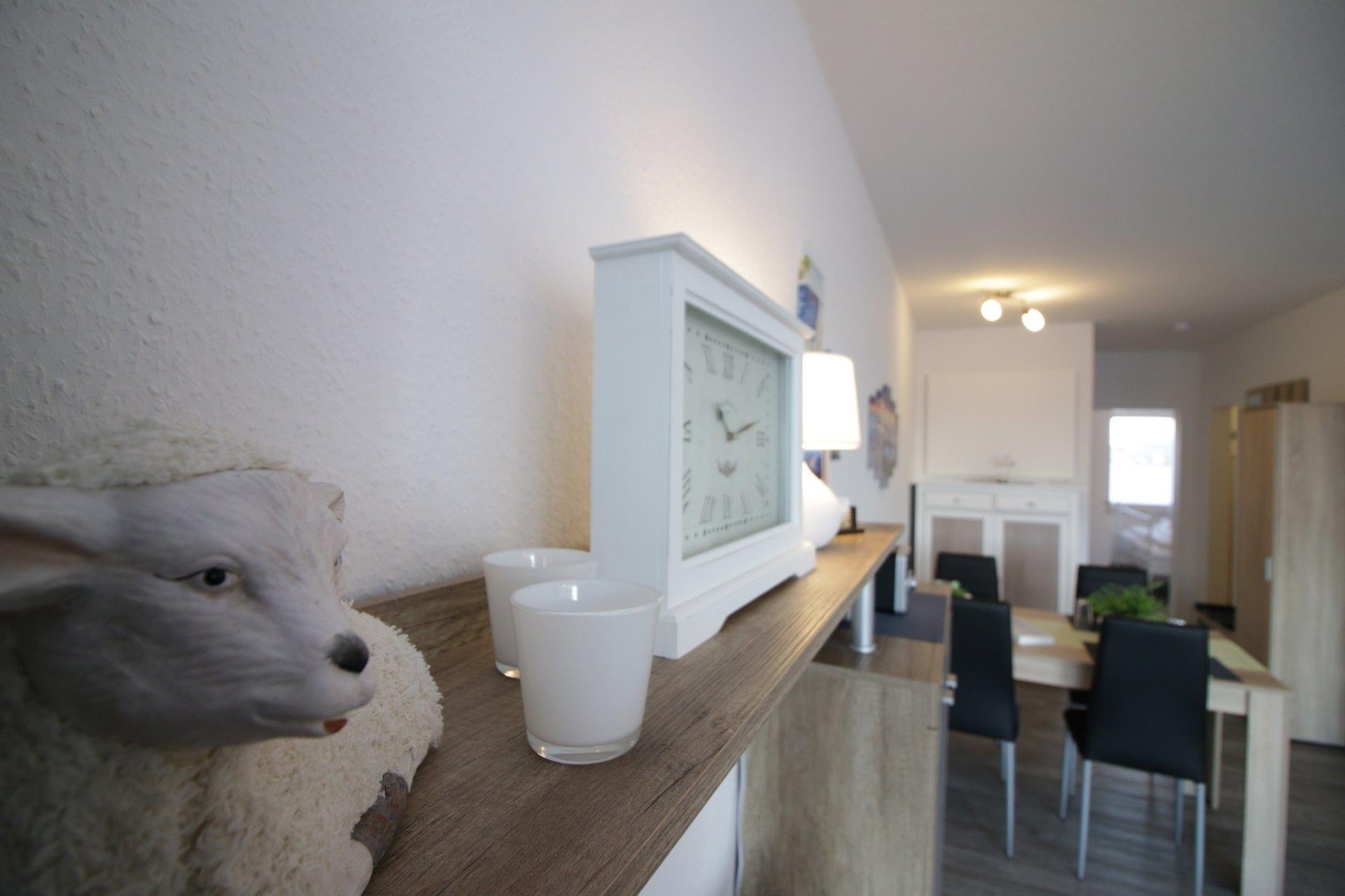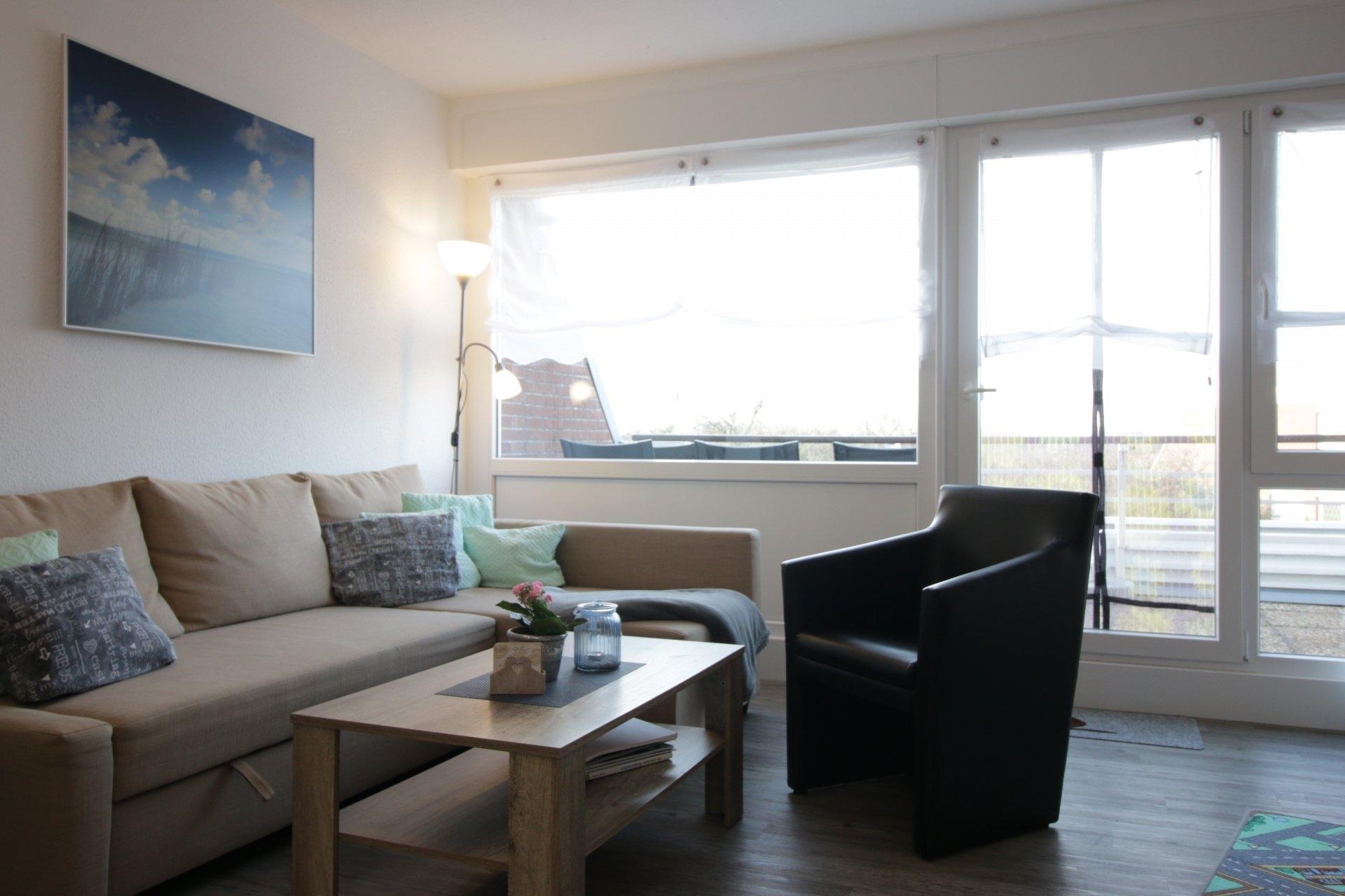 Die 50m² große Ferienwohnung in Horumersiel-Friesenhörn ist geeignet für 2 (-4) Personen. Die Wohnung hat ein großes Wohn- und Esszimmer mit Küchenzeile und großer Schlafcouch auf der 2 Personen übernachten können. Im Schlafzimmer befindet sich ein Doppelbett, Kleiderschrank und Kommode. Es wäre möglich hier ein Reisebett zu stellen. Im innenliegendem Duschbad steht eine Waschmaschine. Vom Balkon aus hat man eine schöne Aussicht in den großen Garten und kann morgens beim Frühstück die Kaninchen und Möwen beobachten. Der Strand von Horumersiel ist in etwa 900m zu Fuß zu erreichen - genauso der Ortskern von Horumersiel mit Einkaufsmöglichkeiten und vielen gemütlichen Restaurants. Man ist aber auch sehr schnell zu Fuss oder mit dem Rad in Schillig am Sandstrand. Ausflüge z.B. nach Wilhelmshaven - Jever - Carolinensiel - der Haustierpark in Werdum - Hohenkirchen mit dem Dorf Wangerland - Indoorspielplatz- Ausflugsfahren zu den Seehundbänken mit der Jens Albrecht ab Horumersiel oder Hooksiel - Jaderbergpark - Schwimmbäder in Horumersiel und Hooksiel. Rauchen in der Wohnung und Tiere sind auf Grund von Allergien leider nicht erlaubt.