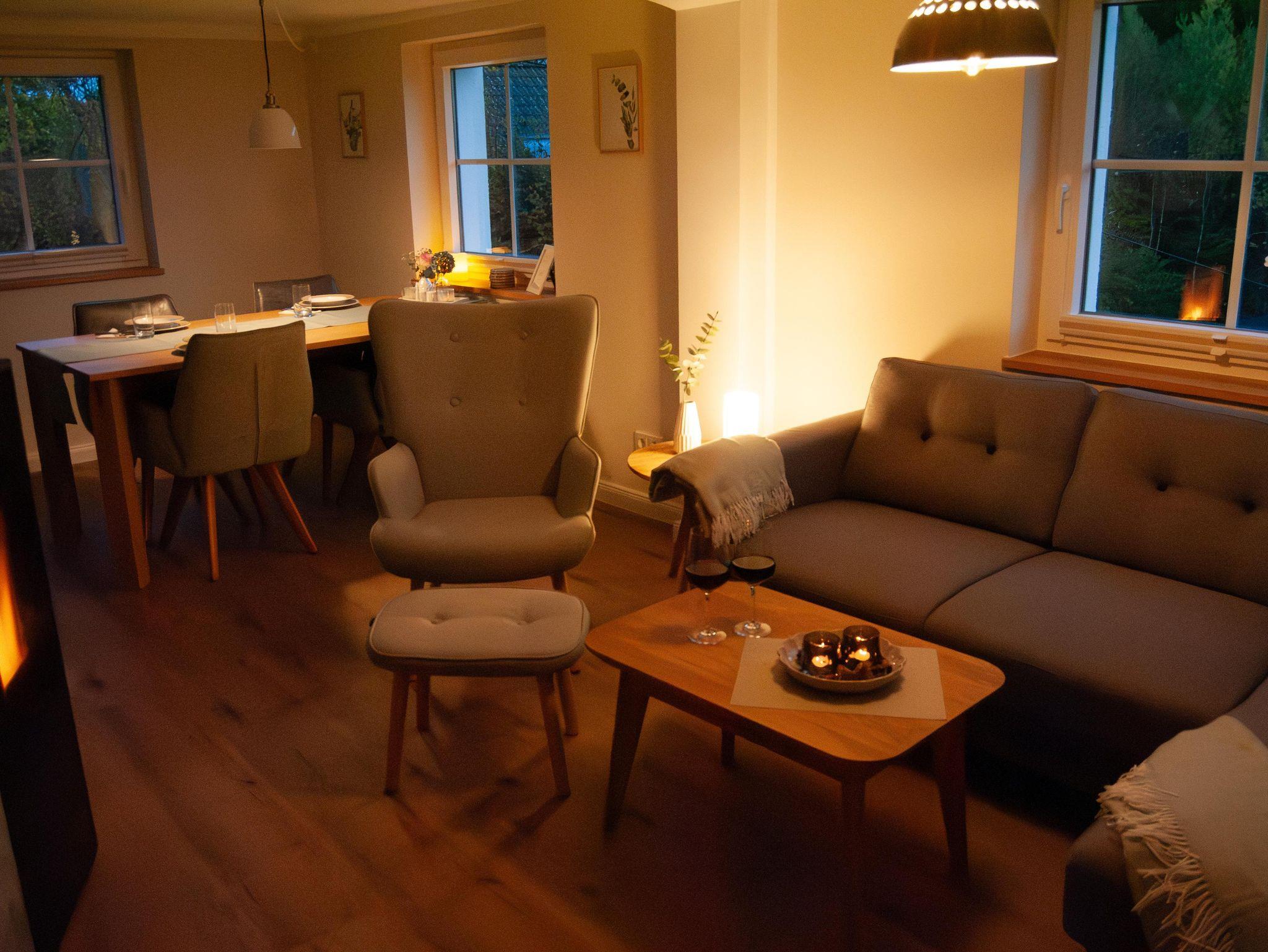 Herzlich willkommen im Ferienhaus Froschkönig, eurer persönlichen Ruheoase im sagenhaft ruhigen Wildenburger Land. Auf 80 m² erlebt ihr Natur pur – eingebettet in sanfte Hügel, dichte Wälder und weite Wiesen. Ob ihr zu zweit, mit Freunden oder der Familie kommt – hier findet ihr Raum zum Entspannen, Zusammensein oder für eure Outdoor-Abenteuer. Im Erdgeschoss erwartet euch ein gemütlicher Wohnbereich mit Couch, Pelletofen und Sat-TV. Der offene Essbereich schließt an eine moderne, voll ausgestattete Küche an – ideal für genussvolle Abende am Esstisch. Außerdem gibt es ein Gäste-WC. Im Obergeschoss befinden sich zwei Schlafzimmer: eines mit Doppelbett und eines mit zwei Einzelbetten. Das Badezimmer ist mit Dusche, Waschbecken und WC ausgestattet.