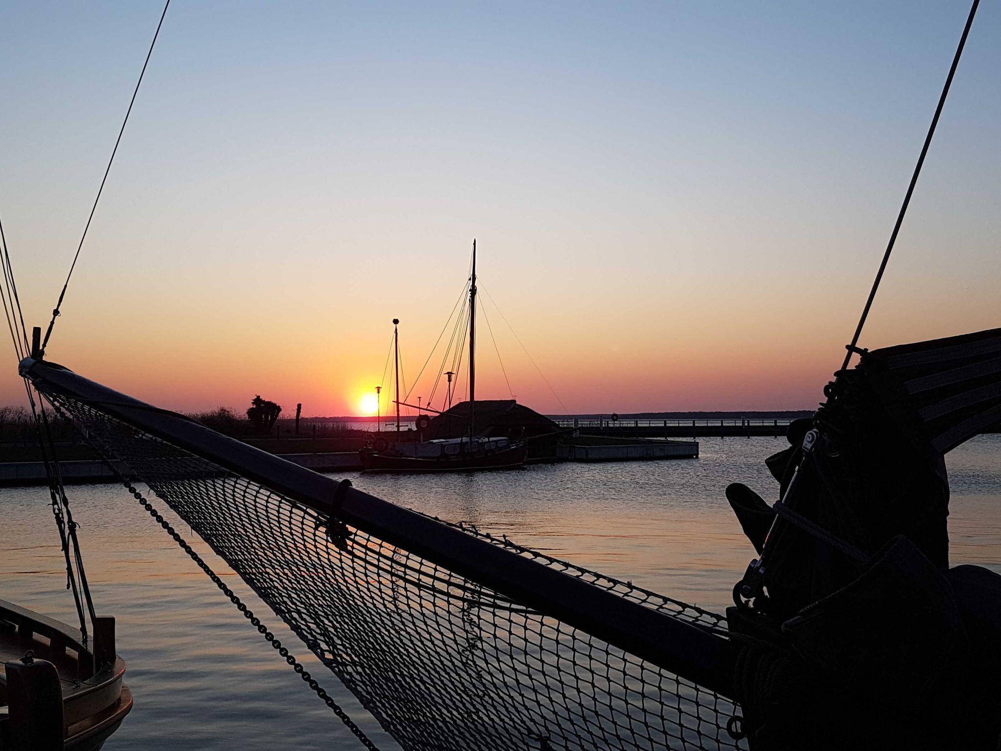 Die 35 m² große Dachterrasse ist mit Ziegelsteinen gelegt, die nicht nur ein mediterranes Ambiente vermitteln, sondern auch in den Abendstunden als Wärmespeicher dienen. Sie wird von früh Morgens bis spät Abends von der Sonne verwöhnt. Hier kann man entspannen und die Ruhe sowie die Aussicht auf den Bodden genießen.