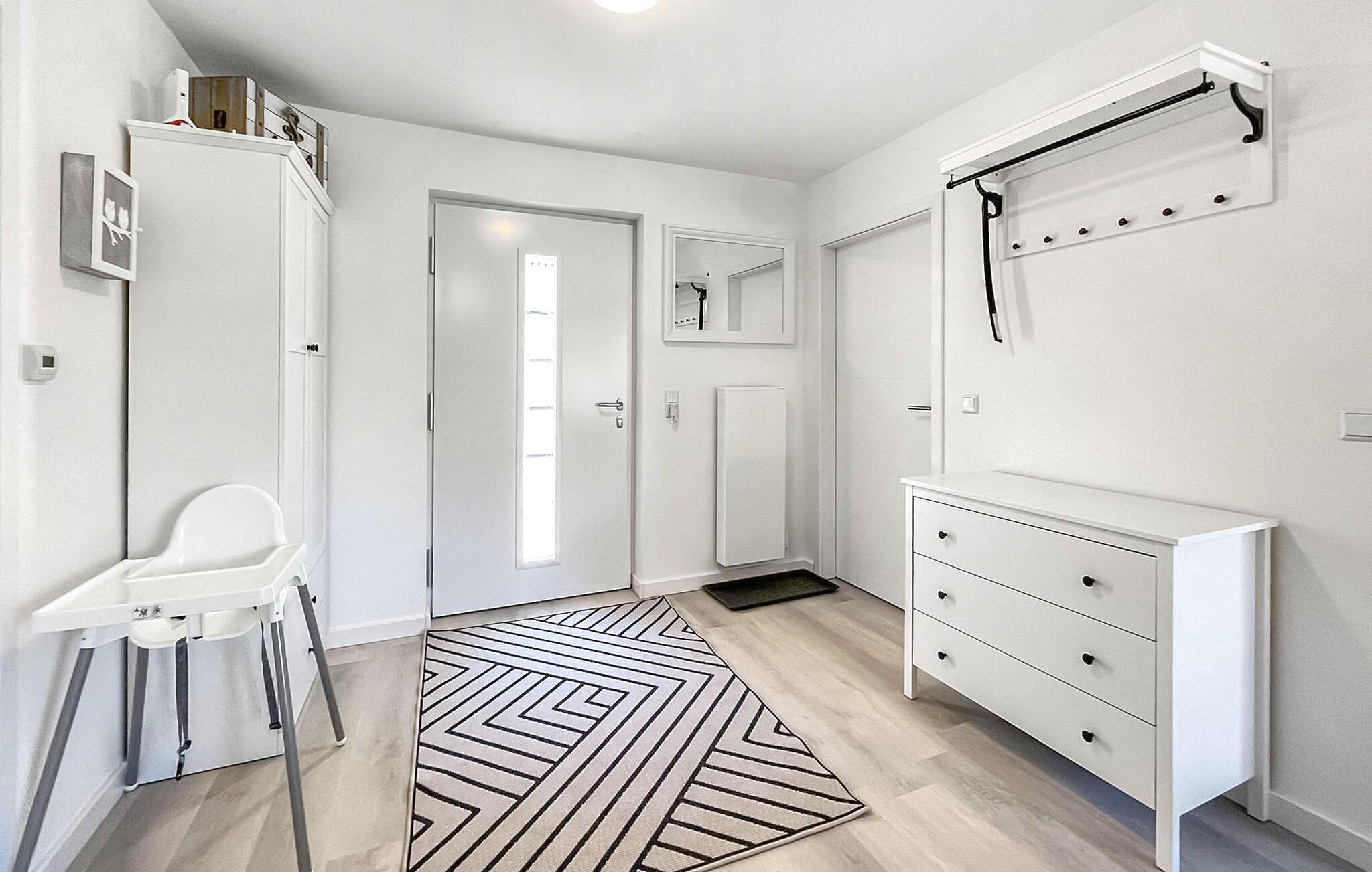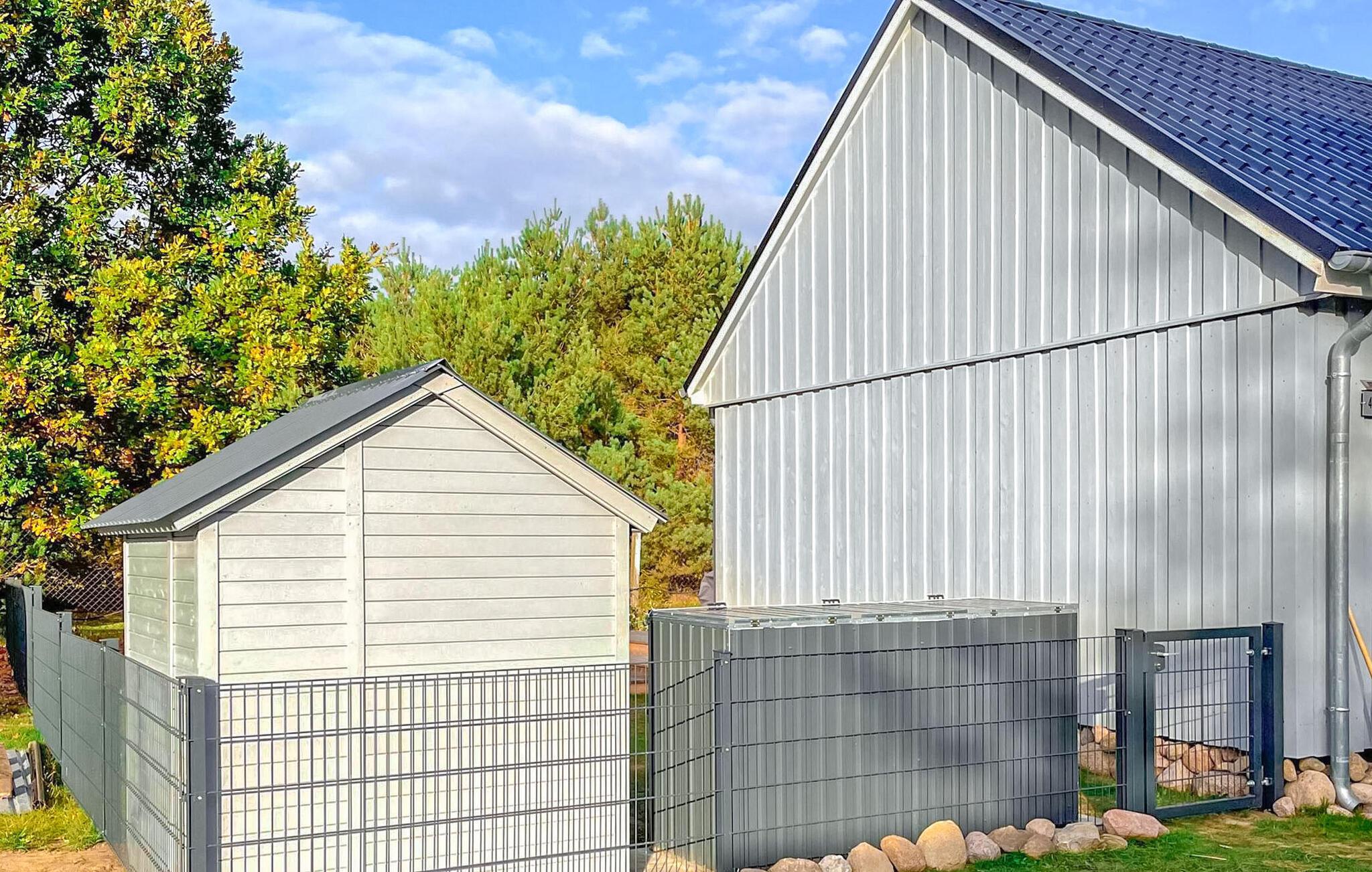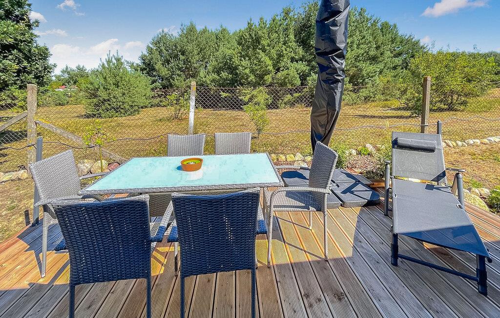 Sommerhuset, som er totalrenoveret og nyindrettet i 2022, ligger på en separat og helt indhegnet fritidsejendom på ca 500 kvadratmeter med en rolig beliggenhed i udkanten af landsbyen og i udkanten af skoven. Bodstedter Bodden med strand og havn ligger ca. 500 m væk. Der er cirka 10 km til Østersøstranden i Zingst. Feriehuset med åben grundplan er udstyret til en høj standard med opholdsstue (polstrede møbler, internetaktiveret fladskærms-tv, radio), tekøkken (elektrisk komfur med ovn, køleskab med fryser, opvaskemaskine, mikroovn, diverse køkkenmaskiner, spisebord), 1. soveværelse (1 x dobbeltseng, TV), 2. soveværelse (2 enkeltsenge) samt badeværelse med brus/toilet, hårtørrer, vask. maskine og tørretumbler. Boligen kan opvarmes med el-varme Der er terrasse med siddepladser, 2 liggestole, grill, cykelrum (redskabsskur) og parkeringsplads til fri afbenyttelse. En høj stol og en rejseseng er til rådighed for små børn. WiFi er også tilgængeligt.