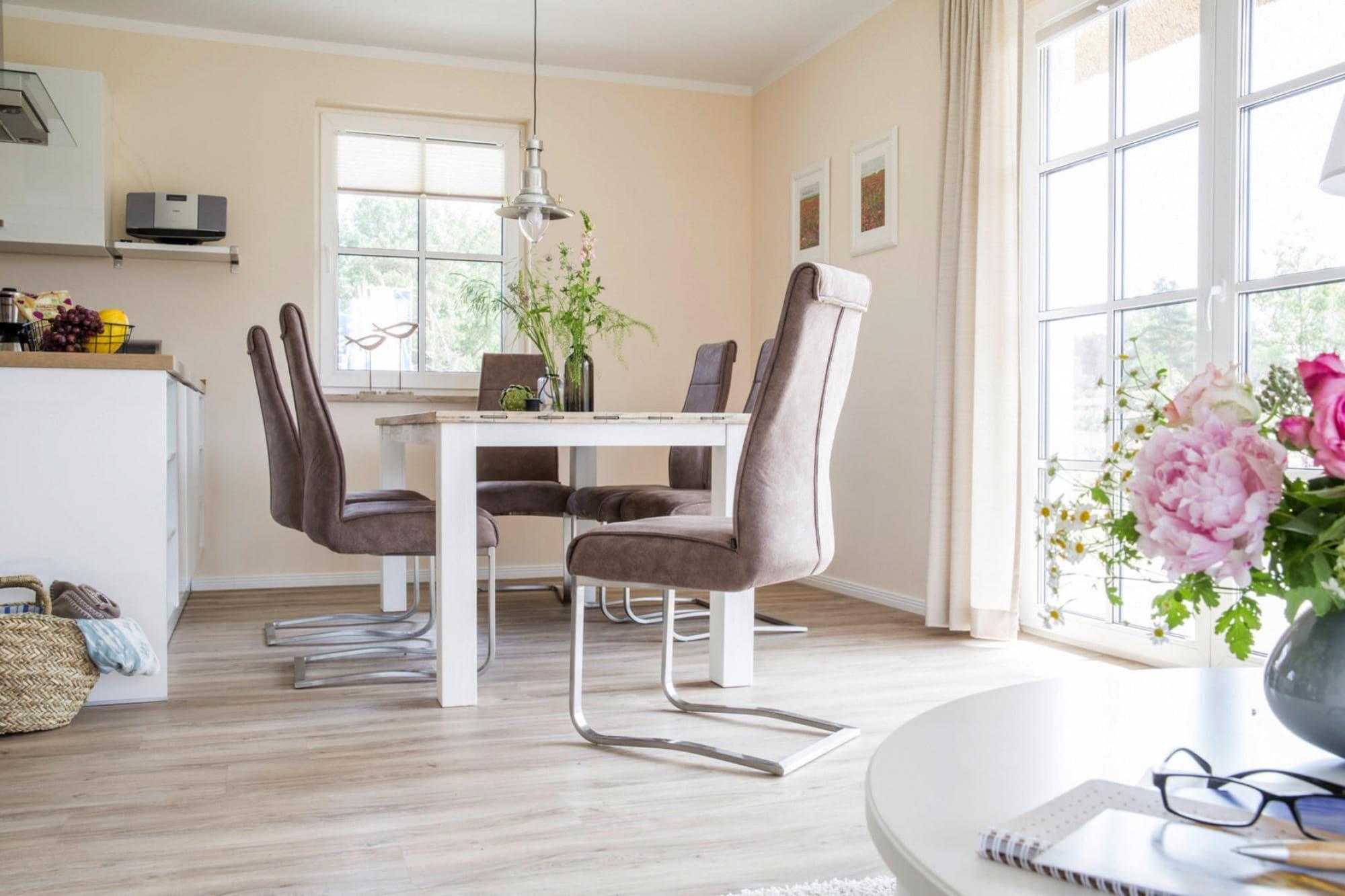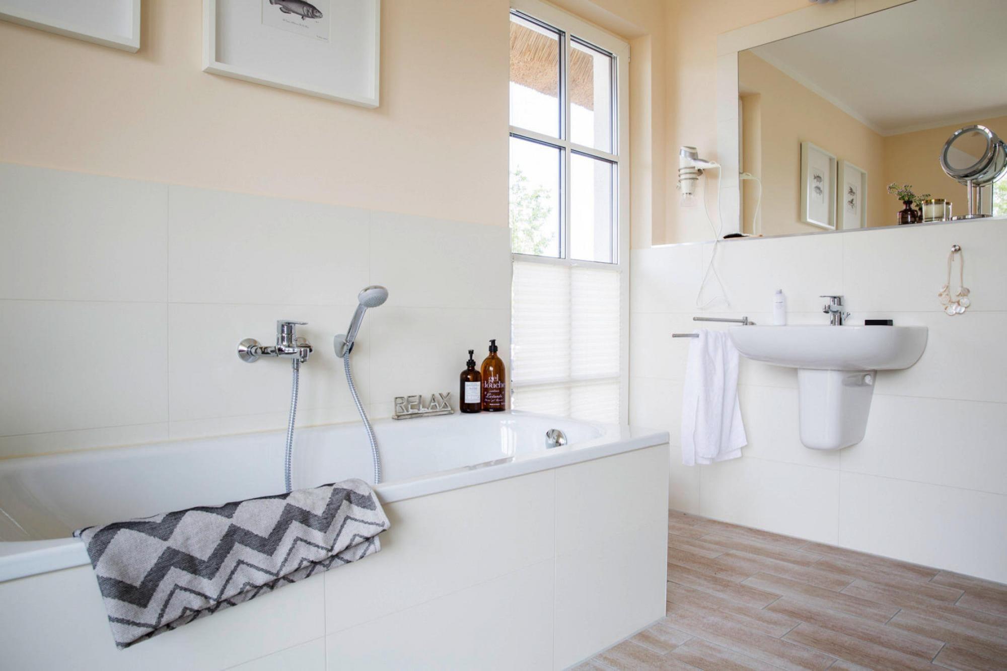 Luksus stråtækt sommerhus meget idyllisk på Bodden, kun 100m fra vandet. Nyd din ferie fra starten og slap af i saunaen eller foran pejsen. WLAN og satellit-tv med Sky giver variation. I sommermånederne kan du slappe af i fred i det naturlige badeområde - kun 170 meter væk ved Bodden-vandet eller du kan tage en tur til den livlige Østersøstrand i Zingst, som ligger 17 kilometer væk. Maleriske landsbyer og et unikt landskab omkring Bodden venter på at blive opdaget af dig. Kommunerne Fuhlendorf og Bodstedt er idyllisk beliggende på Boddens sydkyst. I den varmere årstid sejler passagerskibe dagligt fra Bodstedt til Darß-halvøen i Born og videre gennem Neuendorfer Bülten til Ahrenshoop-Althagen. Højdepunkter: Forbrugsbaserede energiomkostninger, sengelinned, håndklæder, slutrengøringWLAN-aktiviteter i nærheden: Det lille nabosamfund Bodstedt er kendt for sin traditionelle havn med Zeesen-bådene, der ligger der. Individuelle ejere af Zeesenboote tilbyder samkørselsmuligheder, og sådan en mulighed må man ikke gå glip af!Siden 1965 er den store Bodstedt Zeesenboot Regatta startet hvert år den første weekend i september.