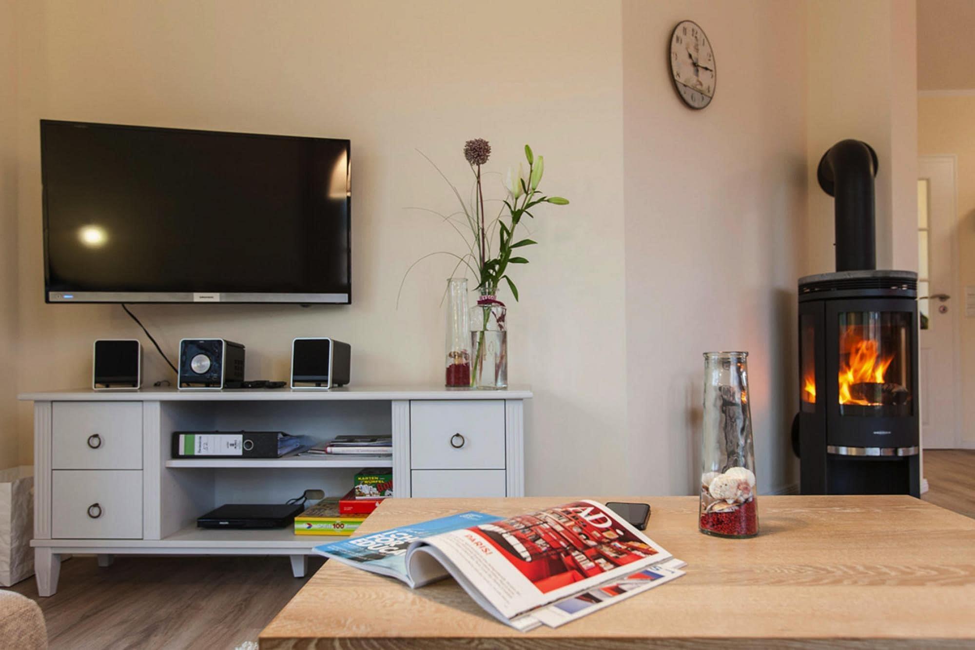 Stueetage: (åbent køkken(kogeplade(Komfur med fire kogeplader, glaskeramisk), elkedel, brødrister, kaffemaskine, ovn, mikrobølgeovn, opvaskemaskine , køleskab(+ fryser)), stue / spisestue(Fjernsyn(parabol), pejs, DVD-afspiller, radio, CD-afspiller), soveværelse(dobbeltseng, Fjernsyn(parabol)), badeværelse(badekar, bruser, håndvask, toilet, føntørrer), pulterkammer) På 1. etage: (soveværelse(dobbeltseng, Fjernsyn(parabol)), soveværelse(dobbeltseng), badeværelse(bruser, sauna, håndvask), toilet) carport, vaskemaskine, varme(gulvvarme), terrasse, terrasse, have, cykelopbevaring, havemøbler, parkering, parkering, Parasol, barnestol, baby crib(free), Håndklæder/sengelinned (inkl.)