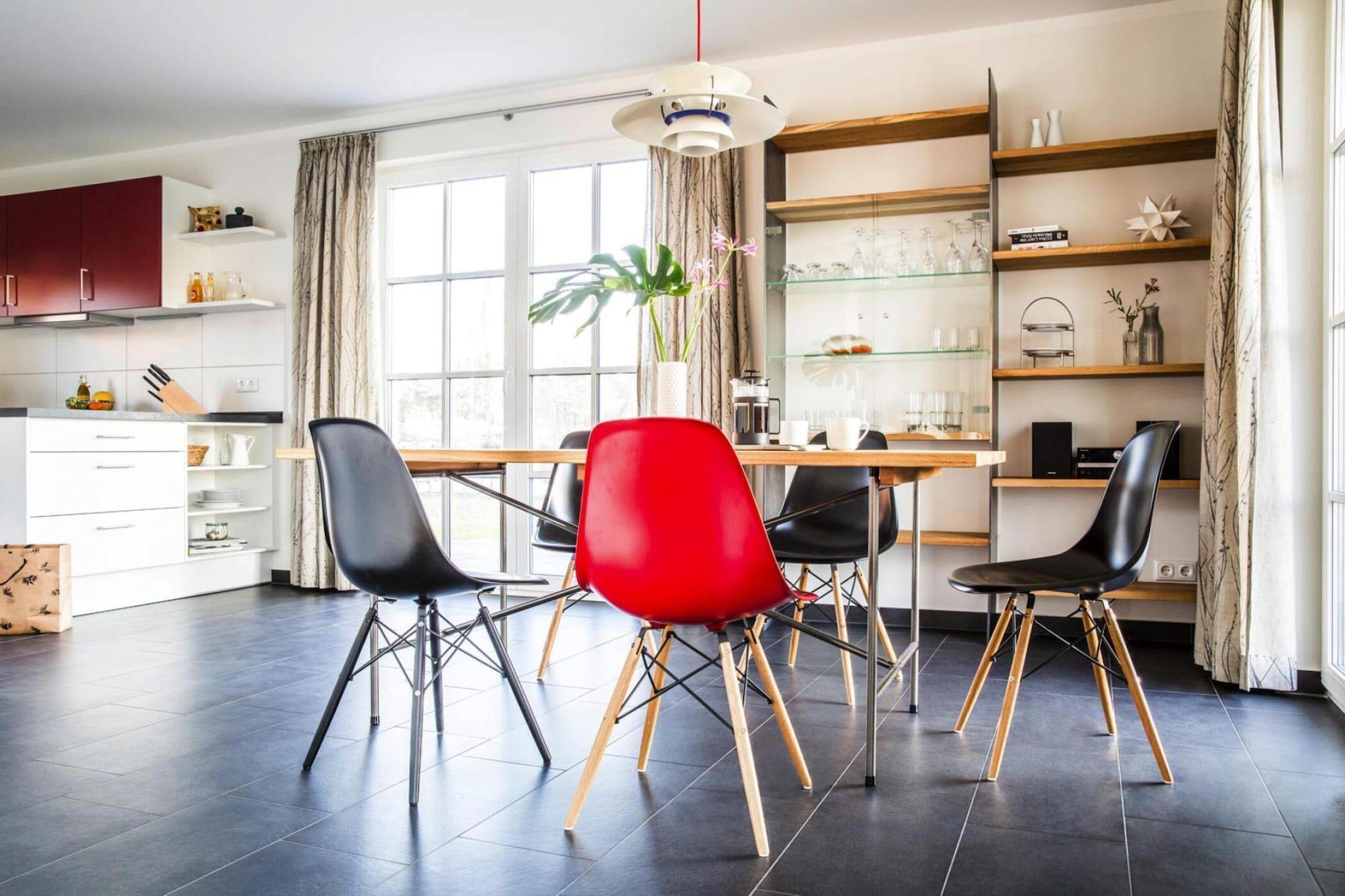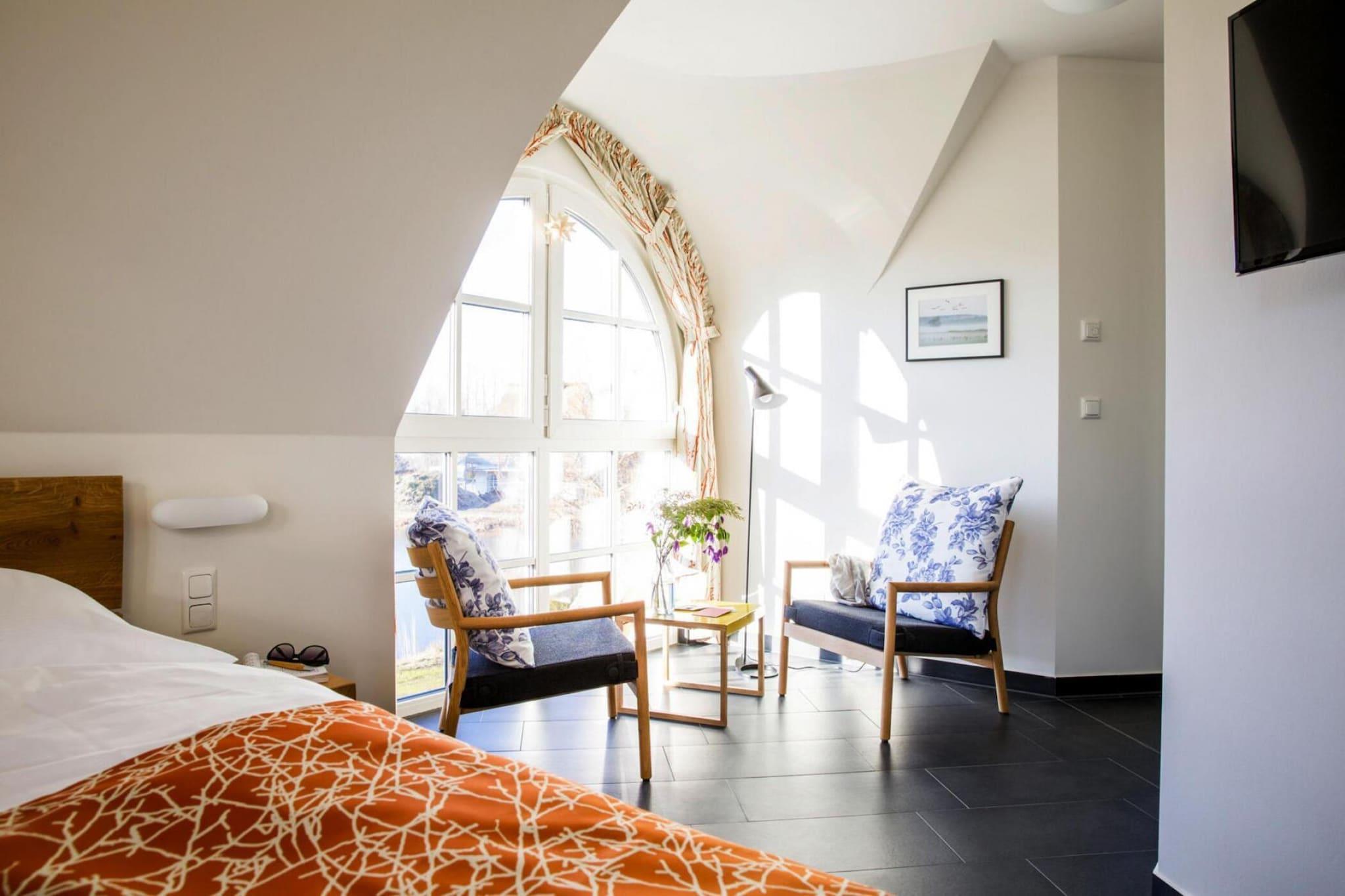 Med naturlig badeplads på Bodden: Nybygget luksushus med stråtag i rolig, malerisk beliggenhed. Sauna og pejs til hyggelige timer, Wi-Fi og satellit-tv med Sky for variation - her mangler virkelig intet. Vil du bytte badepladsen på Bodden ud med den livlige og farverige travlhed på stranden ved Østersøen, er det bare at køre til Zingst, som kun ligger 17 kilometer væk. Derudover kan du tage på skønne cykelture for at opdage de små, idylliske landsbyer og de smukke landskaber omkring Bodden. Kommunerne Fuhlendorf og Bodstedt er idyllisk beliggende på Boddens sydkyst. I den varmere årstid sejler passagerskibe dagligt fra Bodstedt til Darß-halvøen i Born og videre gennem Neuendorfer Bülten til Ahrenshoop-Althagen. Højdepunkter: Forbrugsbaserede energiomkostninger, sengelinned, håndklæder, slutrengøringWLAN-aktiviteter i nærheden: Nabokommunen Bodstedt med sin traditionelle havn er kendt for Zeesen-både, der bor her. Nogle ejere af Zeesenboote tilbyder endda forlystelser, og sådan en mulighed må man ikke gå glip af!Den første weekend i september hvert år siden 1965 starter den store Bodstedt Zeesenbootregatta - et populært motiv, især for amatørfotografer.