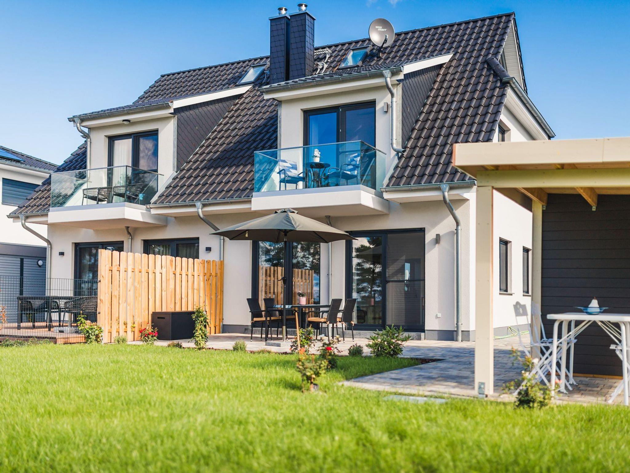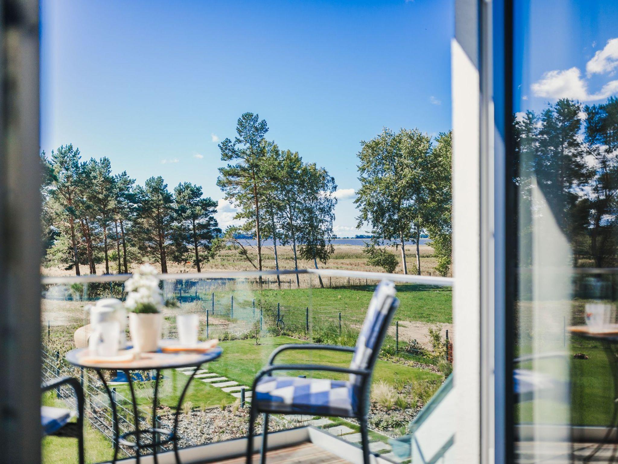 Dieses Ferienhaus beeindruckt durch einen schönen, modernen Balkon im 1.OG, von dem aus Sie einen wunderschönen Boddenblick genießen und in Ruhe Vögel (insbesondere Kraniche), Hasen und Rehe beobachten können.