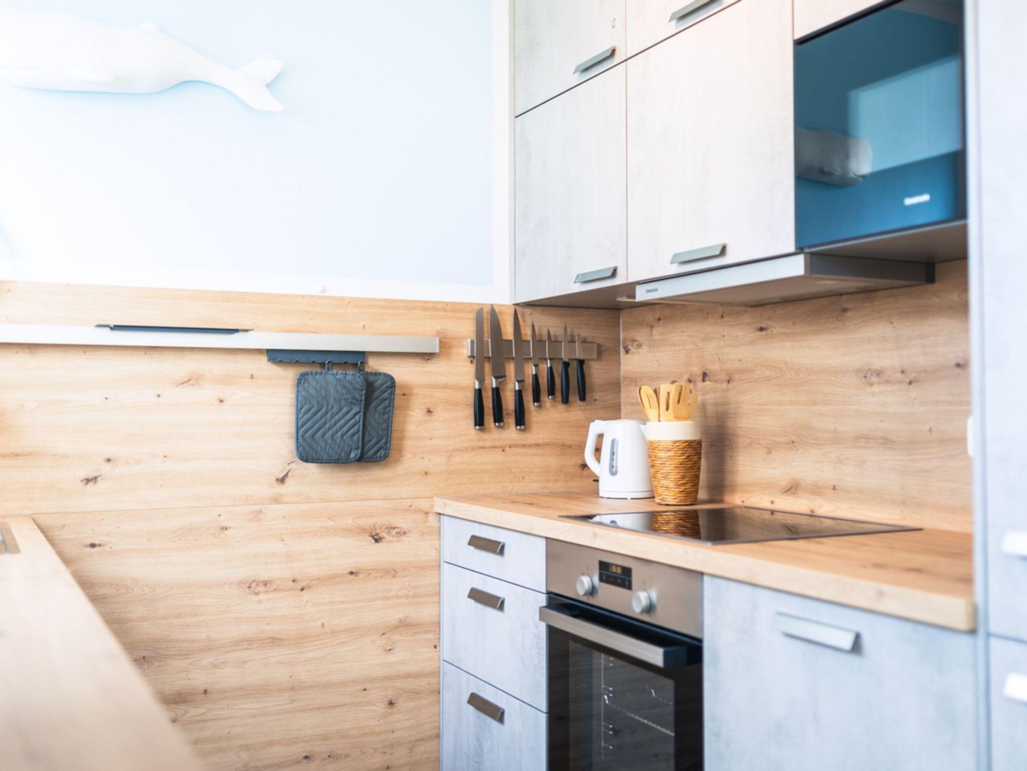 Im Erdgeschoss finden Sie einen kombinierten Wohn- und Essbereich, der geschmackvoll und komfortabel gestaltet ist. WLAN und Magenta TV mit Netflix sind in der Unterkunft kostenfrei vorhanden. Der angrenzende Küchenbereich lädt zum Verwöhnen ein, aufgrund der hochwertigen, vollständigen Ausstattung bleiben hier keine Wünsche offen. In dieser Etage steht ihnen auch ein Bad mit Fenster und Dusche zur Verfügung.