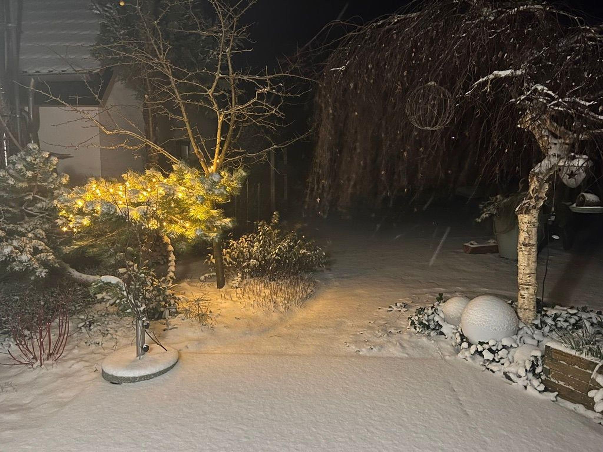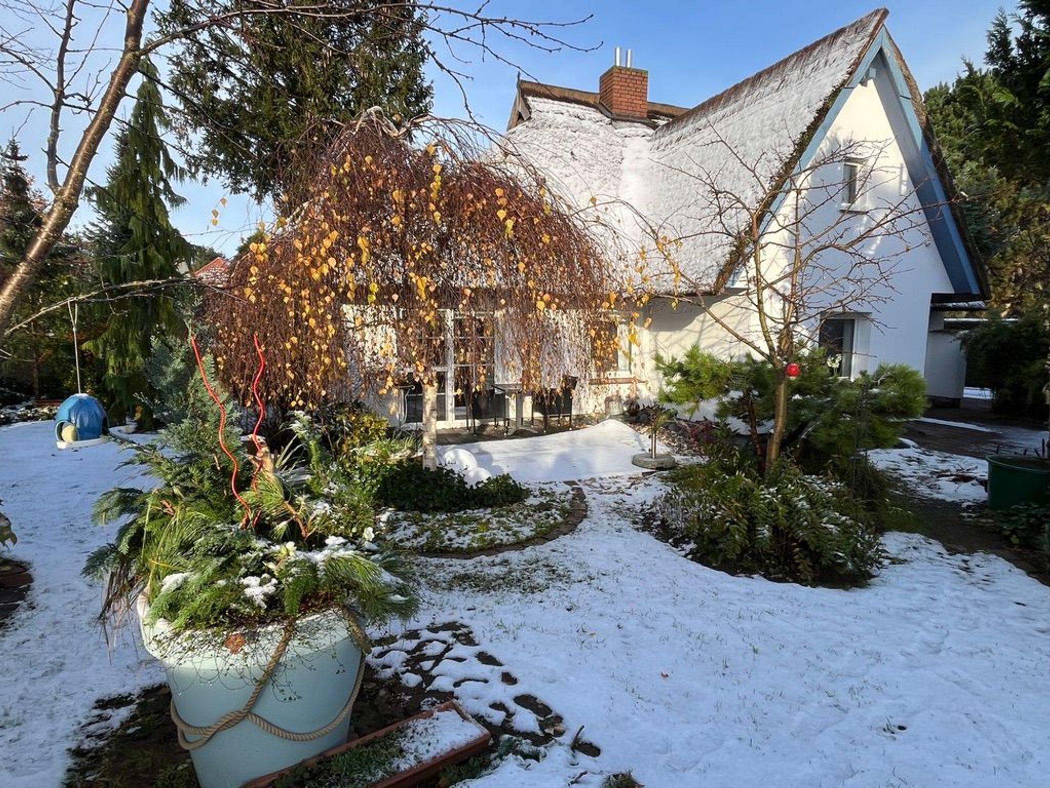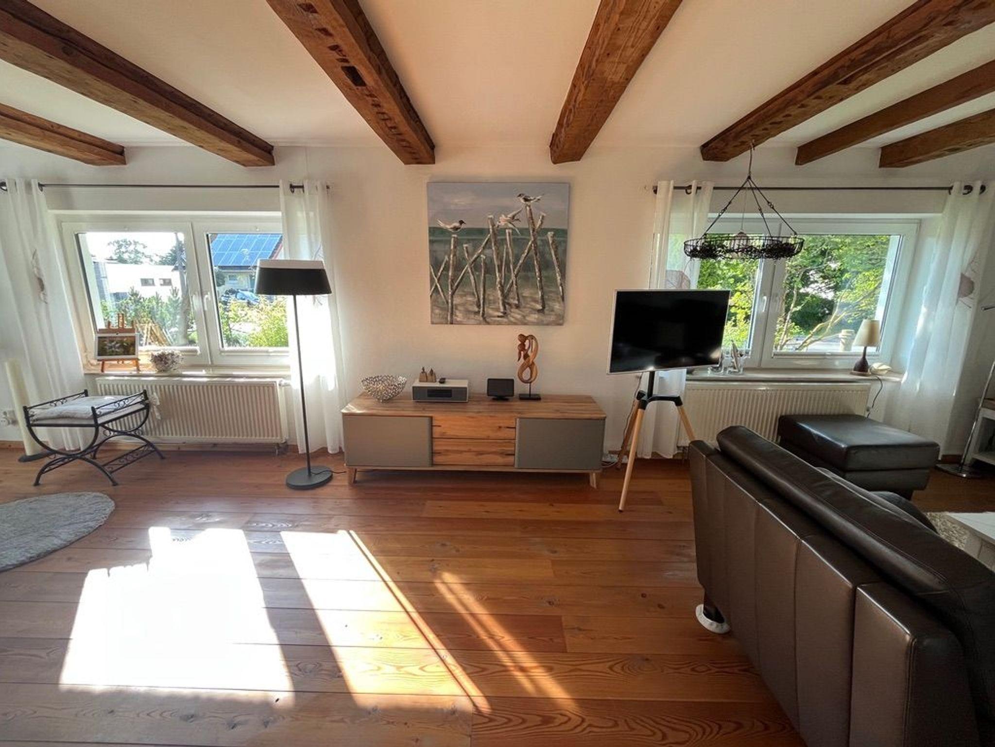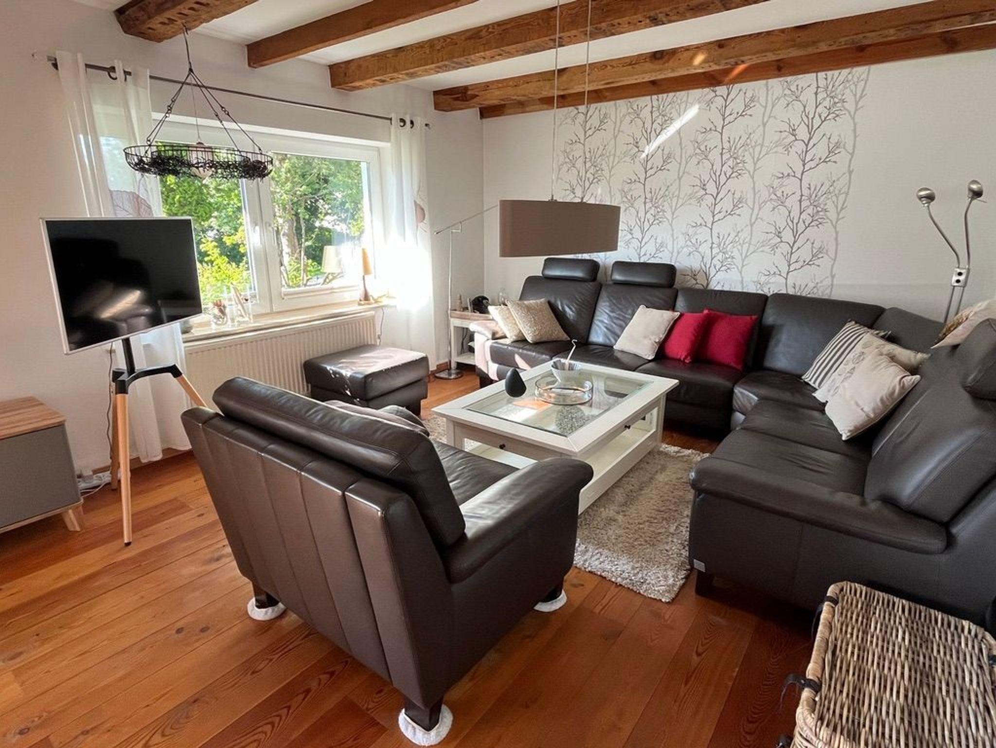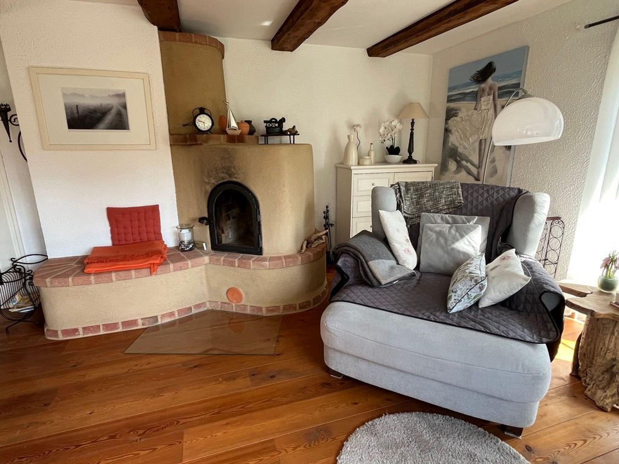 Im Erdgeschoss befindet sich der Wohnbereich mit Kaminofen, die Diele, die Küche und das Bad.