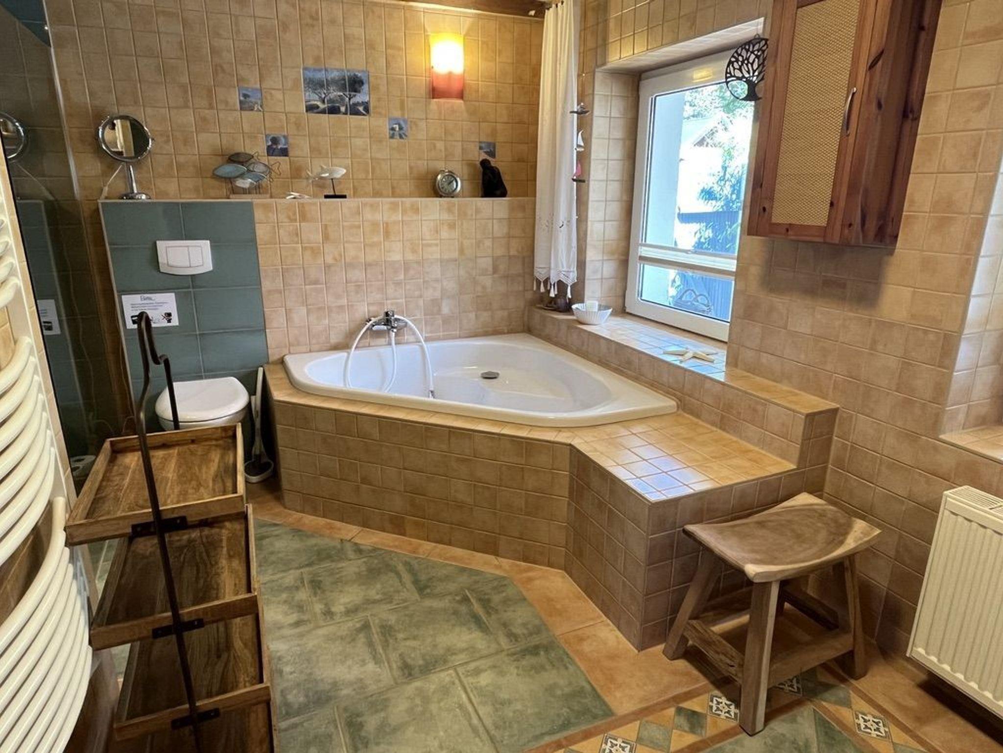 Das großzügige Bad, mit Eckbadewanne und Duschbereich, lädt auch gern zum Wohlfühlen ein.