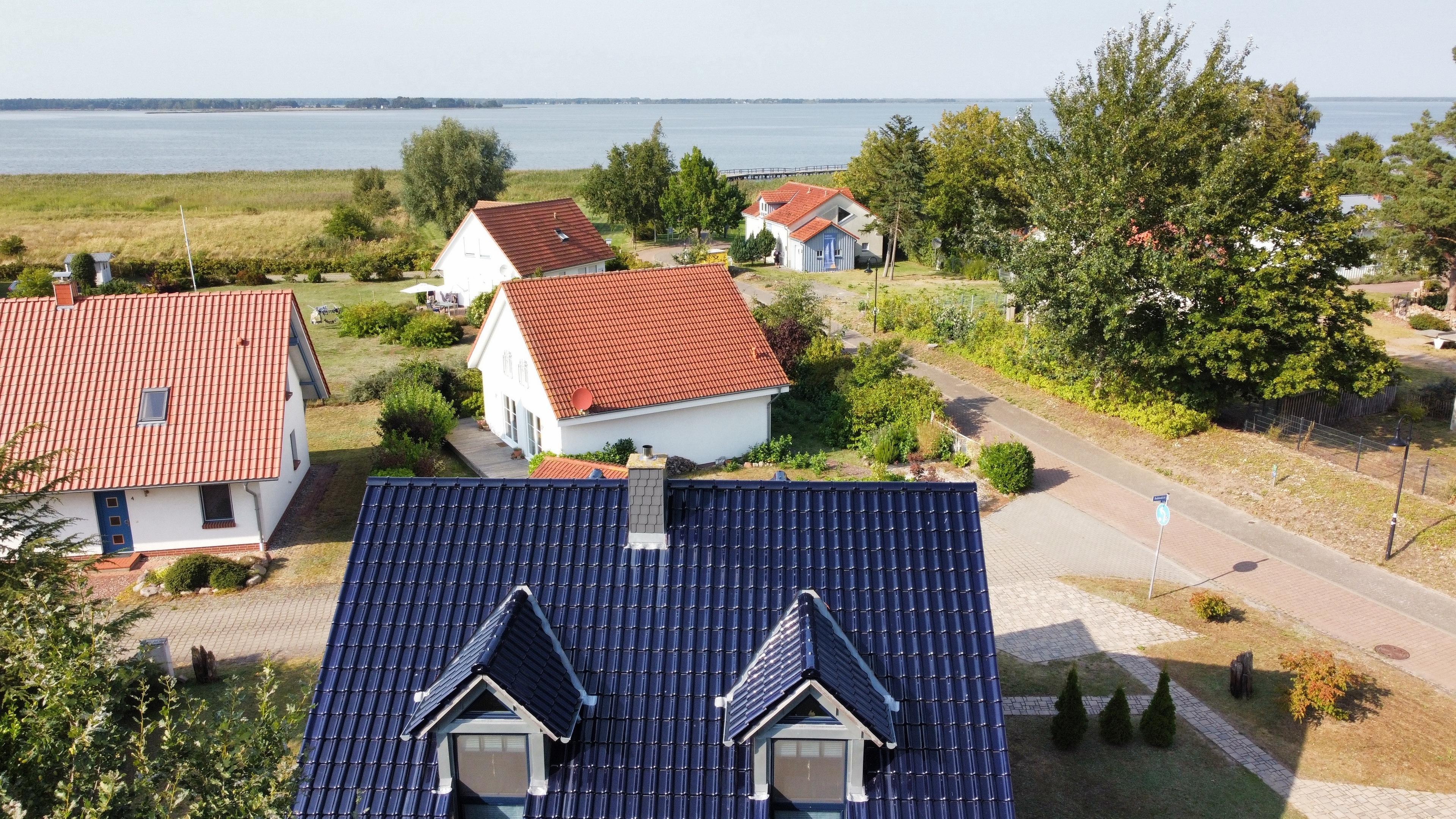 Unser Ferienhaus "Leuchtturm" liegt nur 100 m entfernt vom Bootssteg. Hier legt mehrmals tätglich eine Fahrradfähre zum Fischland Darss ab. Also auf an den Strand oder auf zur Fahrradtour auf´s Fischland.