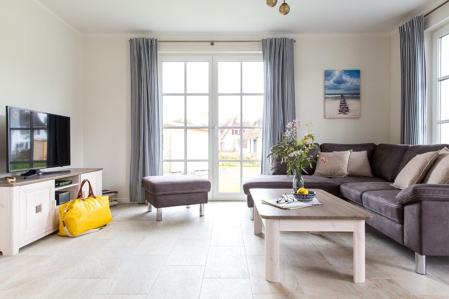 Dieses modern ausgestattete Ferienhaus mit traditionellem Reetdach, ortstypischer Feldsteineinfriedung und 678 m2 großem Grundstück liegt in einer neuen Ferienhausanlage. Es bietet viel Platz für vier Feriengäste (zwei Schlafzimmer mit Doppelbett und TV) und verfügt über einen großzügigen Wohn-Essbereich, ein einladendes Wannen-/Duschbad mit WC und Sauna im OG sowie ein Gäste-WC im EG.