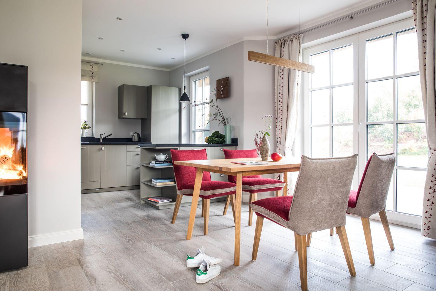 Im EG befindet sich ein ca. 36 qm großer Wohn-Essbereich mit gemütlicher Couch, Kaminofen, SAT-TV mit Sky und neben einer komplett ausgestatteten Küche ist ein Esstisch für 4 Personen vorhanden. .