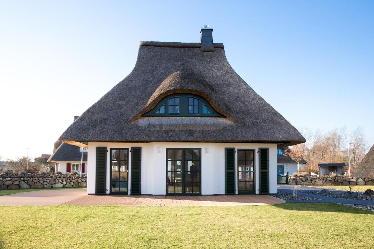 Dieses modern ausgestattete Ferienhaus mit traditionellem Reetdach, ortstypischer Feldsteineinfriedung und 676 m2 großem, eingezäuntem Grundstück liegt in einer neuen Ferienhausanlage. Es bietet viel Platz für vier Feriengäste (zwei Schlafzimmer mit Doppelbett und TV) und verfügt über einen großzügigen Wohn-Essbereich, ein einladendes Wannen-/Duschbad mit WC und Sauna im OG sowie ein Gäste-WC im EG.