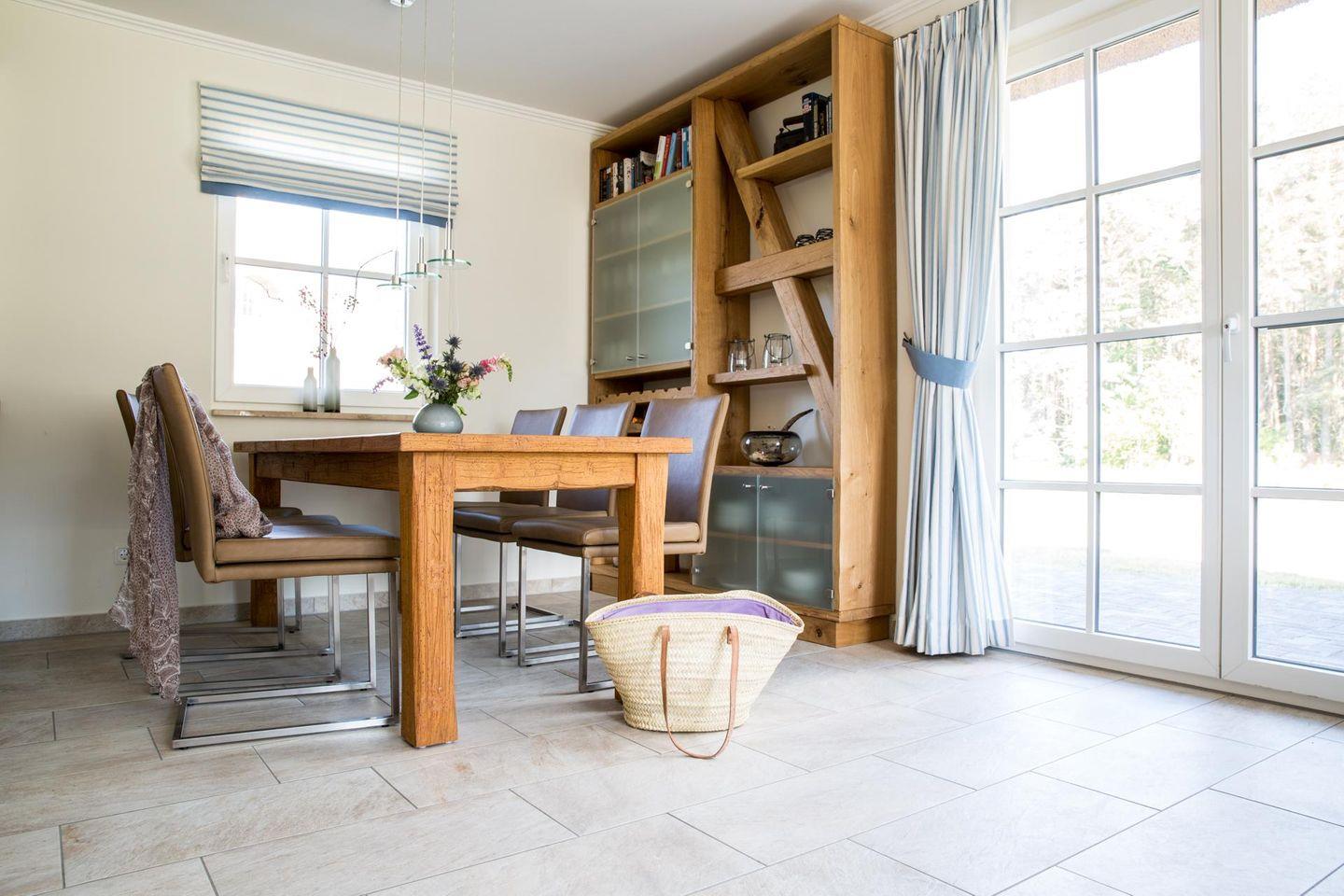 Im Erdgeschoss befindet sich ein ca. 30 qm großer Wohn-Essbereich mit gemütlichen Sitzmöglichkeiten, Kaminofen, SAT-TV mit Sky und neben einer komplett ausgestatteten Küche ist ein großer Esstisch für sechs Personen vorhanden.