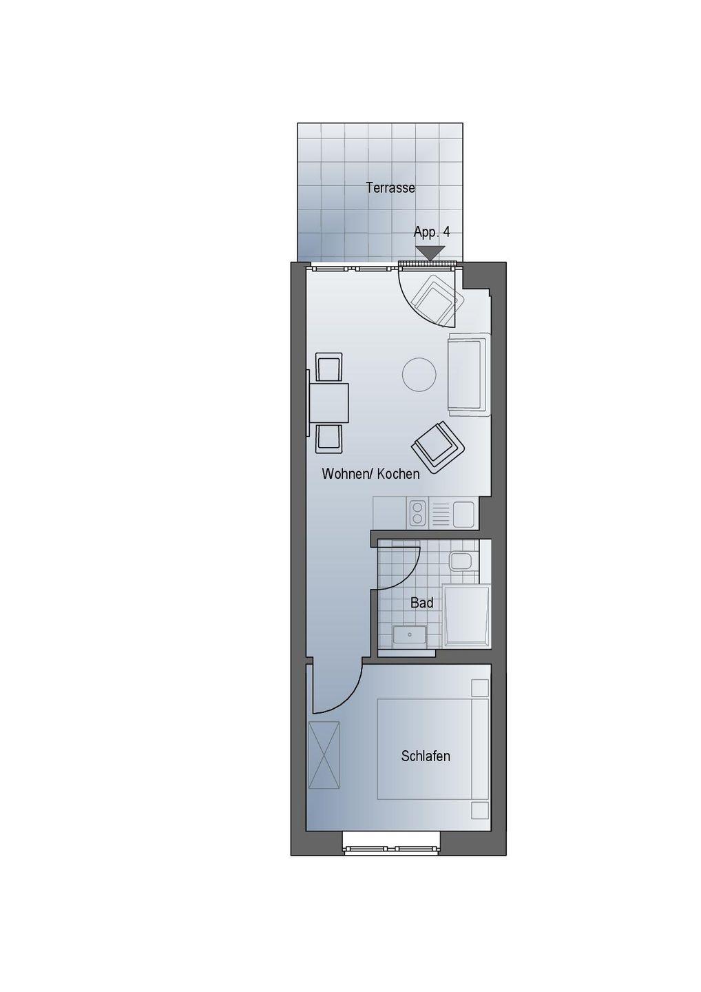 Auf der Terrasse stehen Ihnen moderne Terrassenmöbel zur Verfügung, sodass Sie beispielweise Ihr Frühstück oder Ihr Abendessen ganz privat im Sonnenschein zu sich nehmen können.