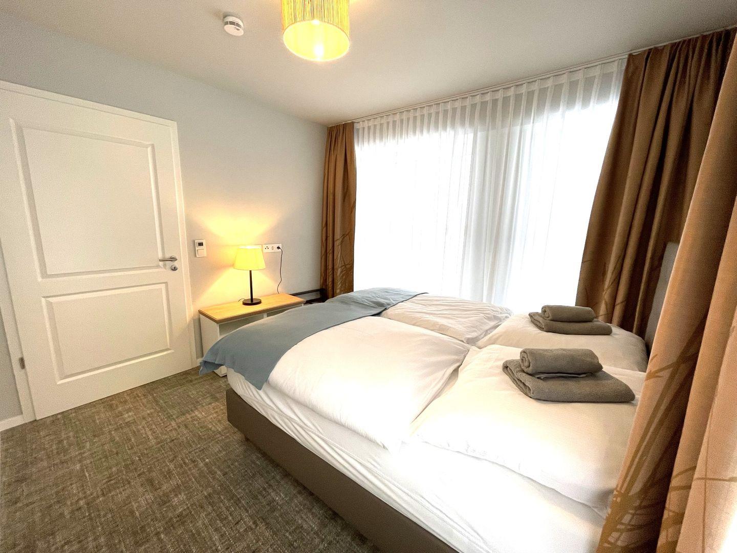 Die Ferienwohnung besitzt zusätzlich zum Wohnzimmer zwei separate Schlafzimmer. Das erste Schlafzimmer bietet ein modernes Doppelbett (1,60m x 2,00m), auf welchem Sie einen erholsamen Schlaf finden werden. Im zweiten Schlafzimmer bieten zwei Einzelbetten (0,80m x 2,00m) zwei weiteren Personen einen komfortablen Schlafplatz. Ein Kinderbett sowie ein Hochstuhl können auf Anfrage hinzugebucht werden.
