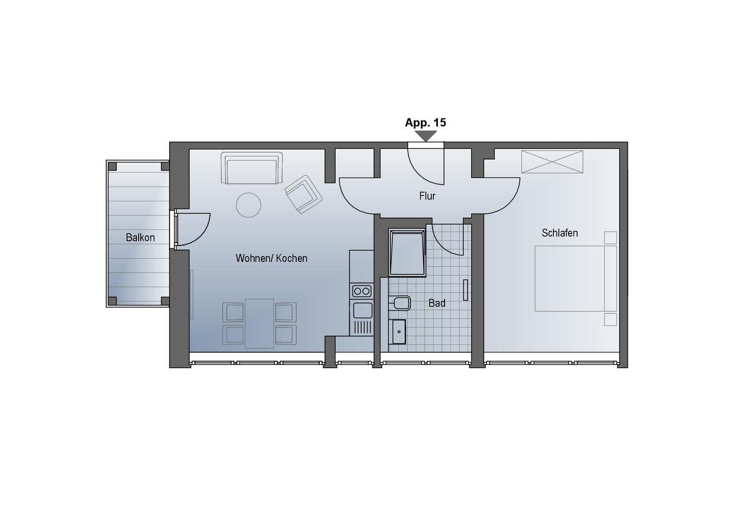 Haus Barth, Appartement 15 für bis zu 4 Personen.