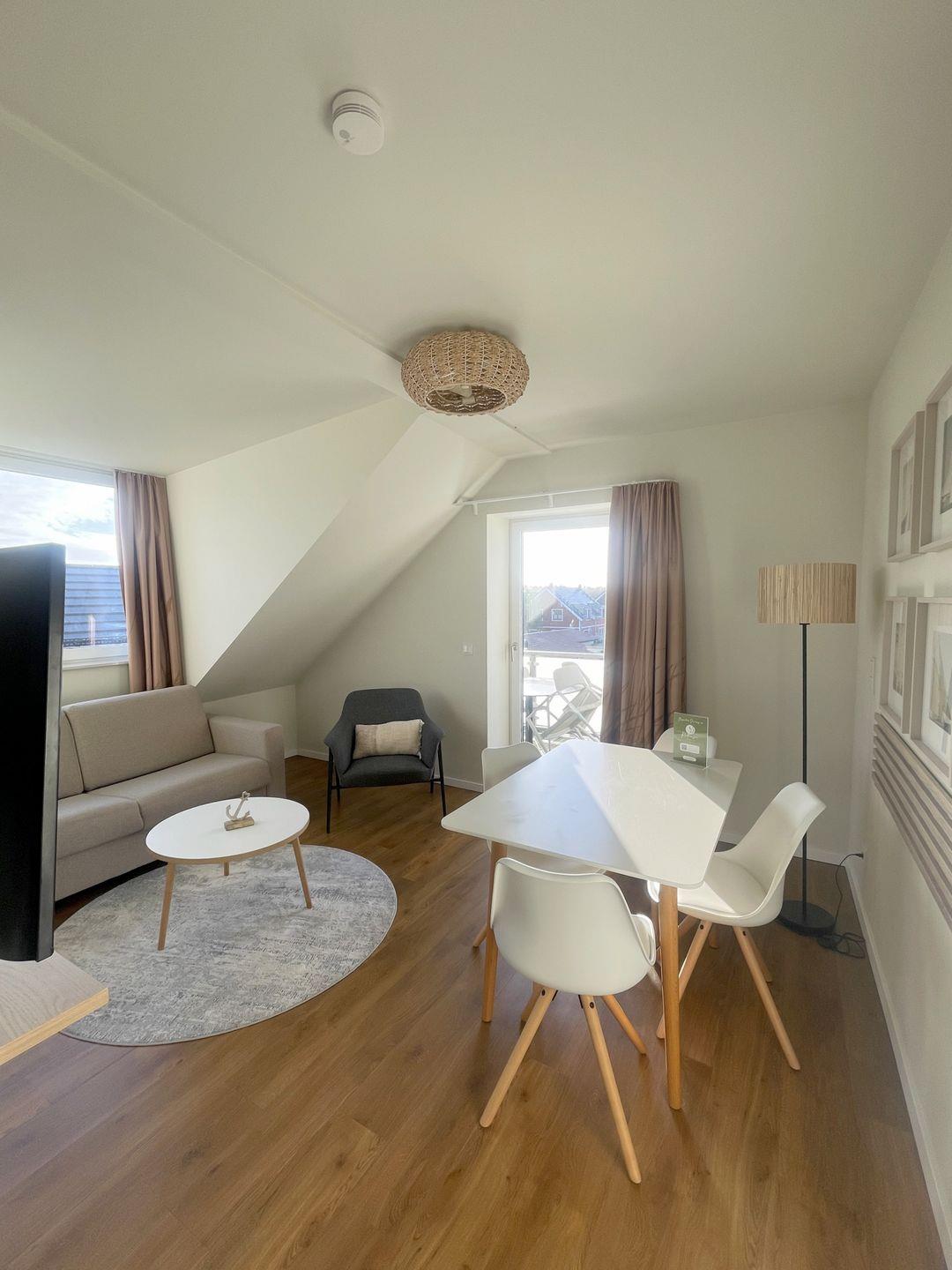 Das komfortable Appartement bietet auf 42 qm viel Platz für bis zu 4 Personen. Der gemütliche Wohnbereich besitzt ein bequemes Sofa, welches sich mit wenigen Handgriffen zu einer Doppelschlafcouch (1,40m x 2,00m) umfunktionieren lässt, und sorgt mit einem Flat Screen-TV für reichlich Entertainment.