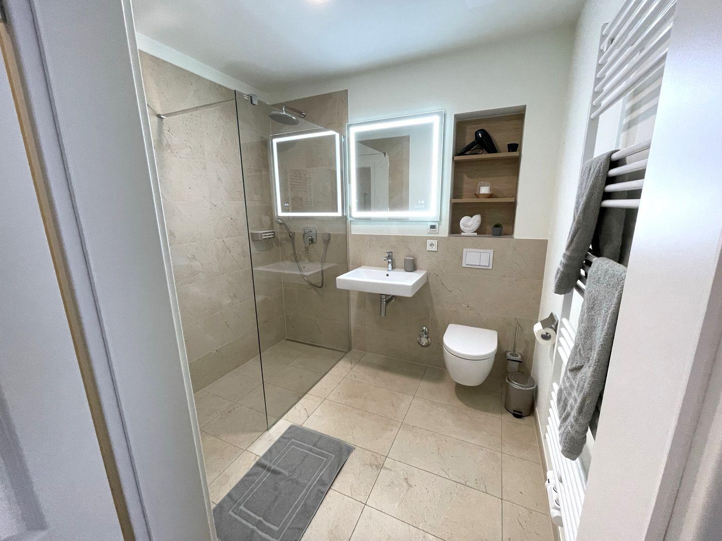 Das Schlafzimmer bietet ein modernes Doppelbett (1,80m x 2,00m), auf welchem Sie süße Träume haben werden. Ein TV steht zu Ihrer Unterhaltung im Schlafzimmer zur Verfügung. Ein Kinderbett sowie ein Hochstuhl können auf Anfrage hinzugebucht werden.