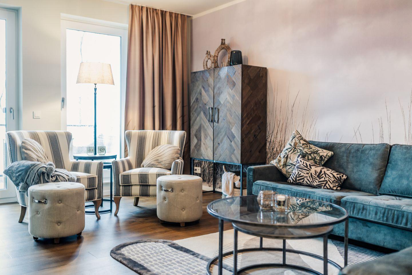 Das Appartement bietet auf 77 qm viel Platz für bis zu 4 Personen. Genießen Sie Ihren Traumurlaub am Bodstedter Bodden im Baltic Lagoon Resort in Fuhlendorf und fühlen Sie sich wie Zuhause. Restaurant und Strand befinden sich direkt im Resort.